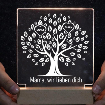 Personalisierbarer 2 Namen & Text Familienbaum Acryl Nachtlicht - für Familie