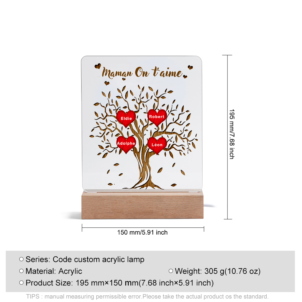 Personalisierbarer 4 Namen & Text Familienbaum Acryl Nachtlicht-für Familie