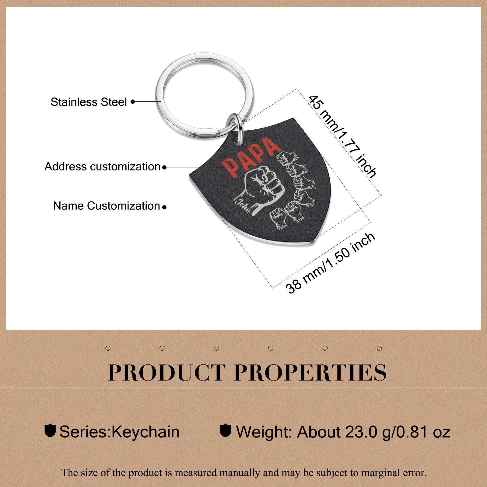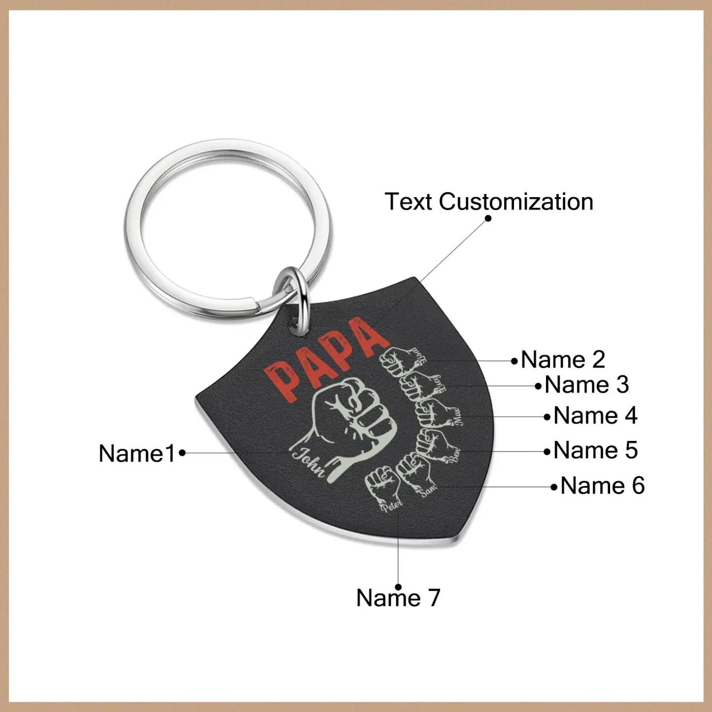 Personalisierbarer 7 Namen & Text Papa Schild Schlüsselanhänger-Geschenk für Vater