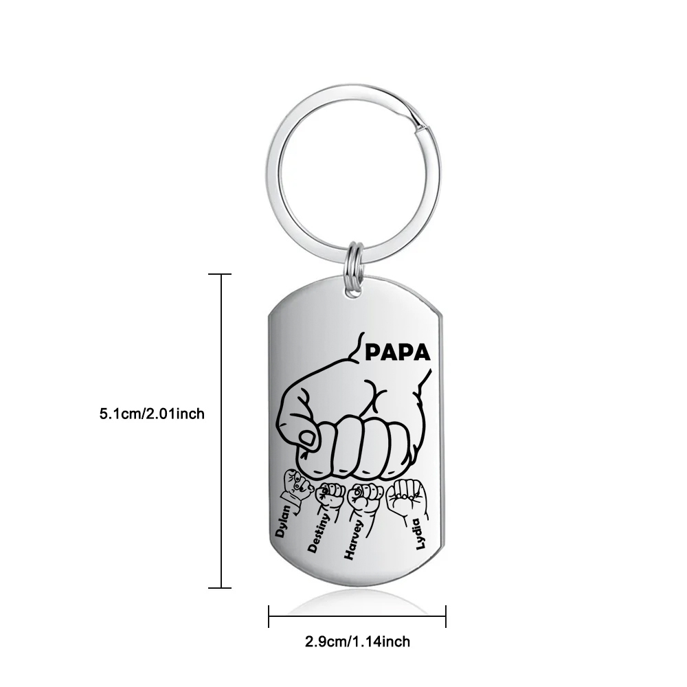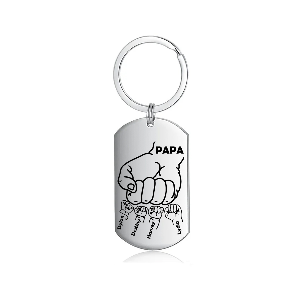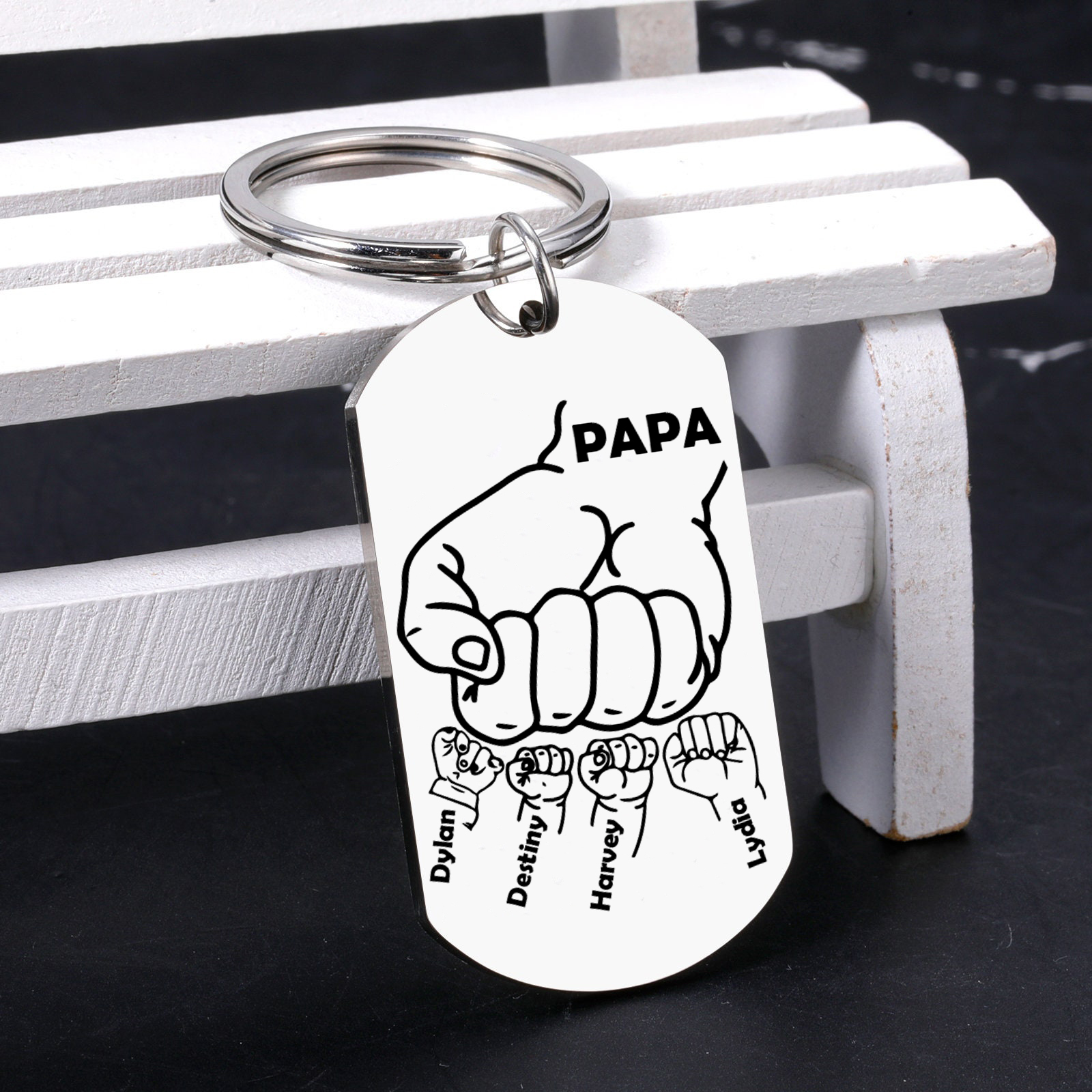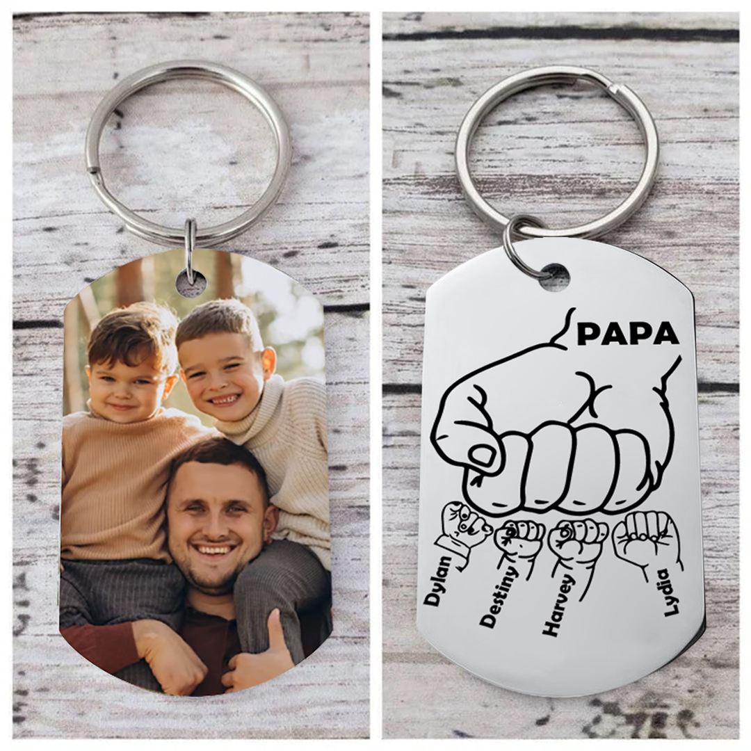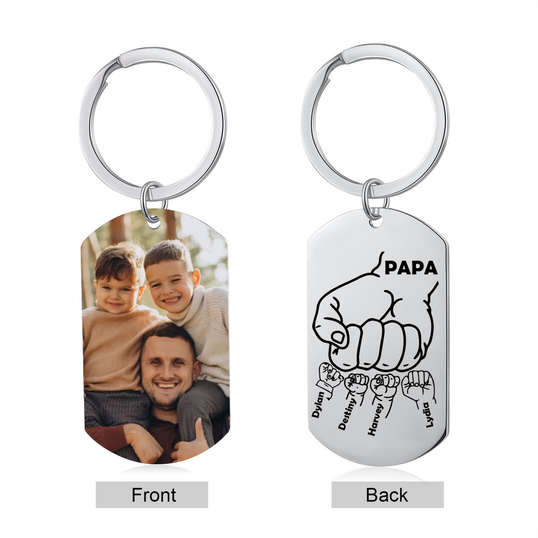 Personalisierbarer Foto & 4 Namen Papa Faust Schlüsselanhänger-Geschenk für Vater