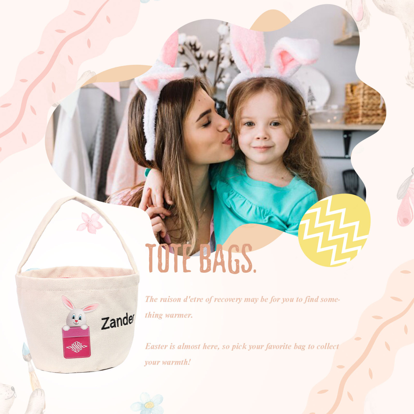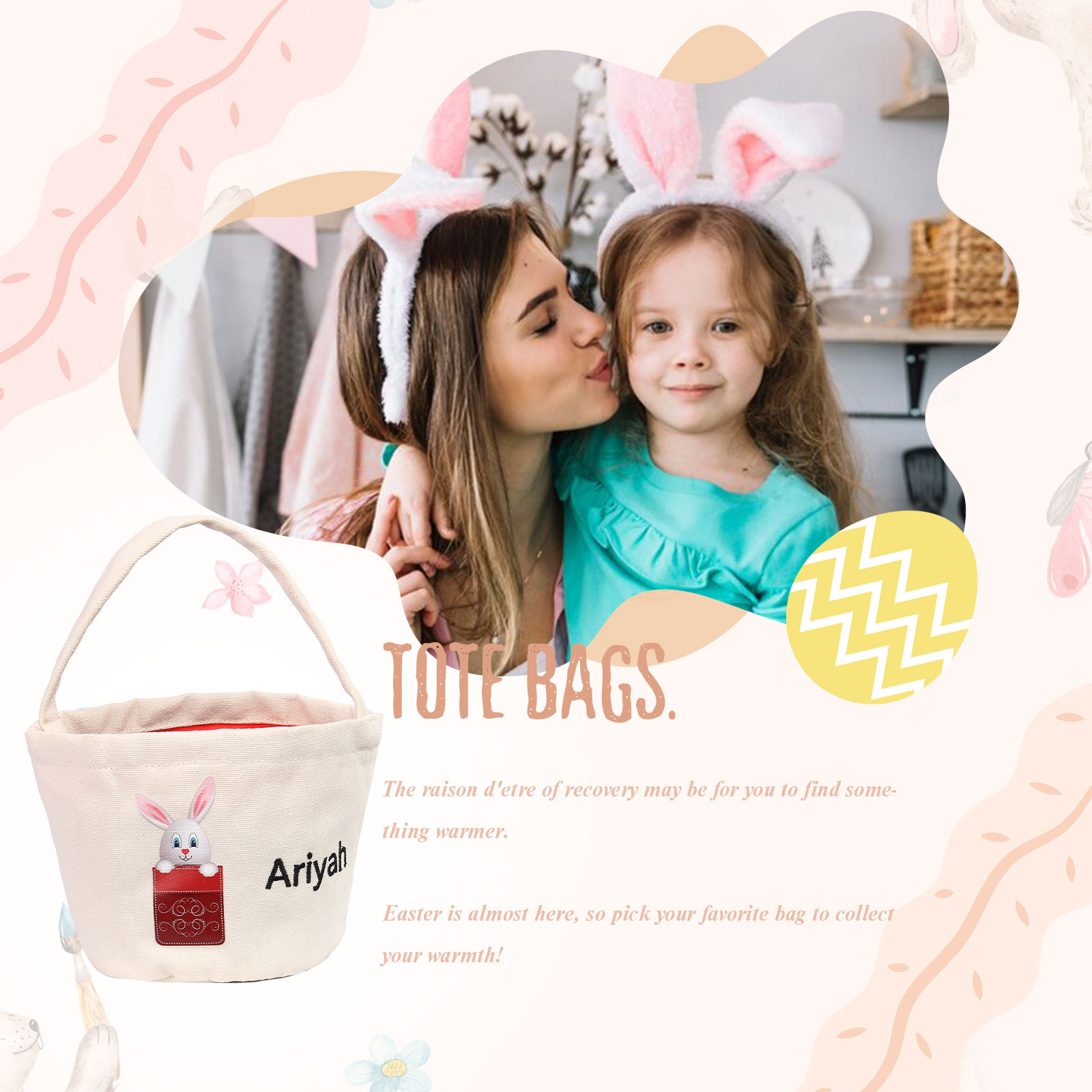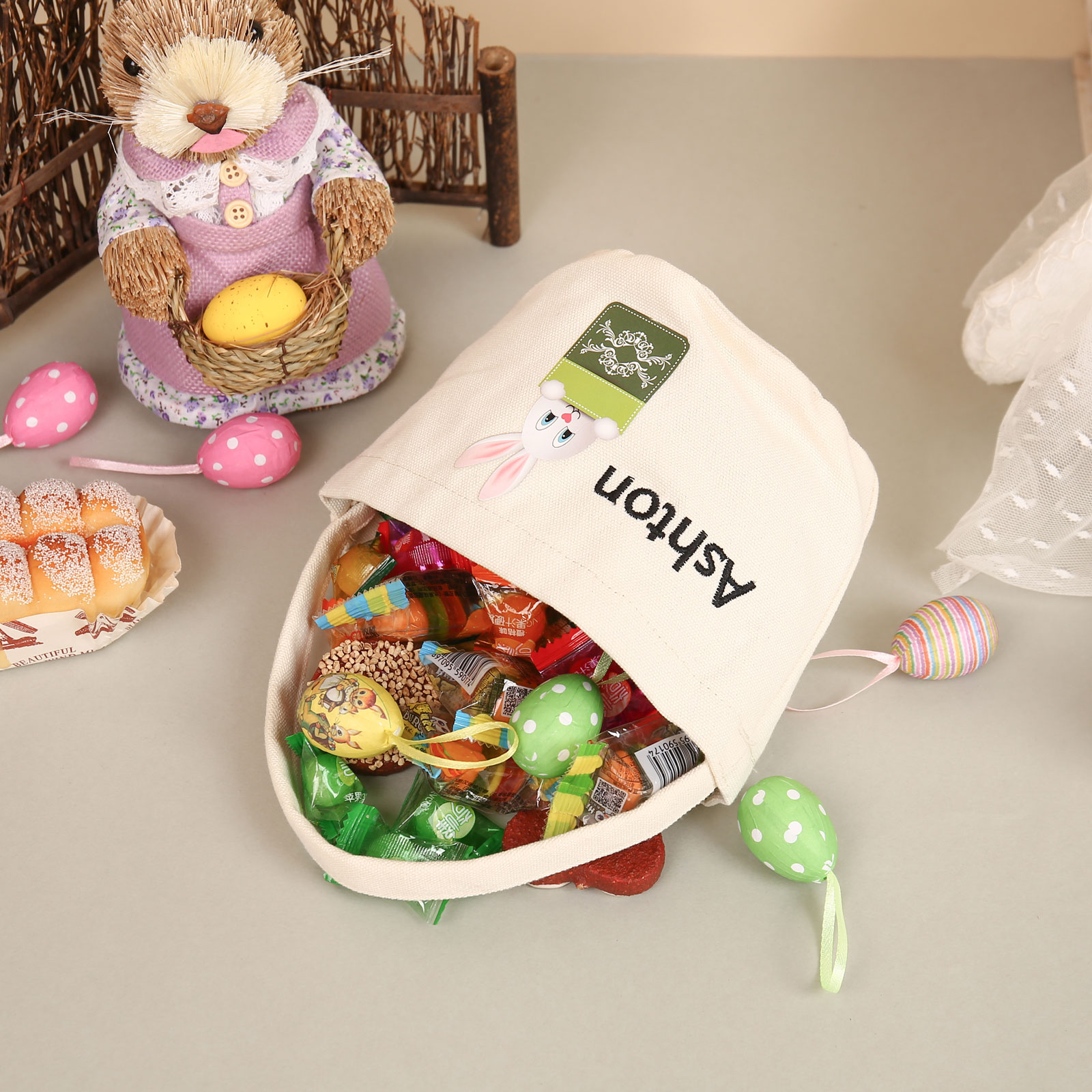 Personalisierbarer Name Ostern Leinwand Hase Korb