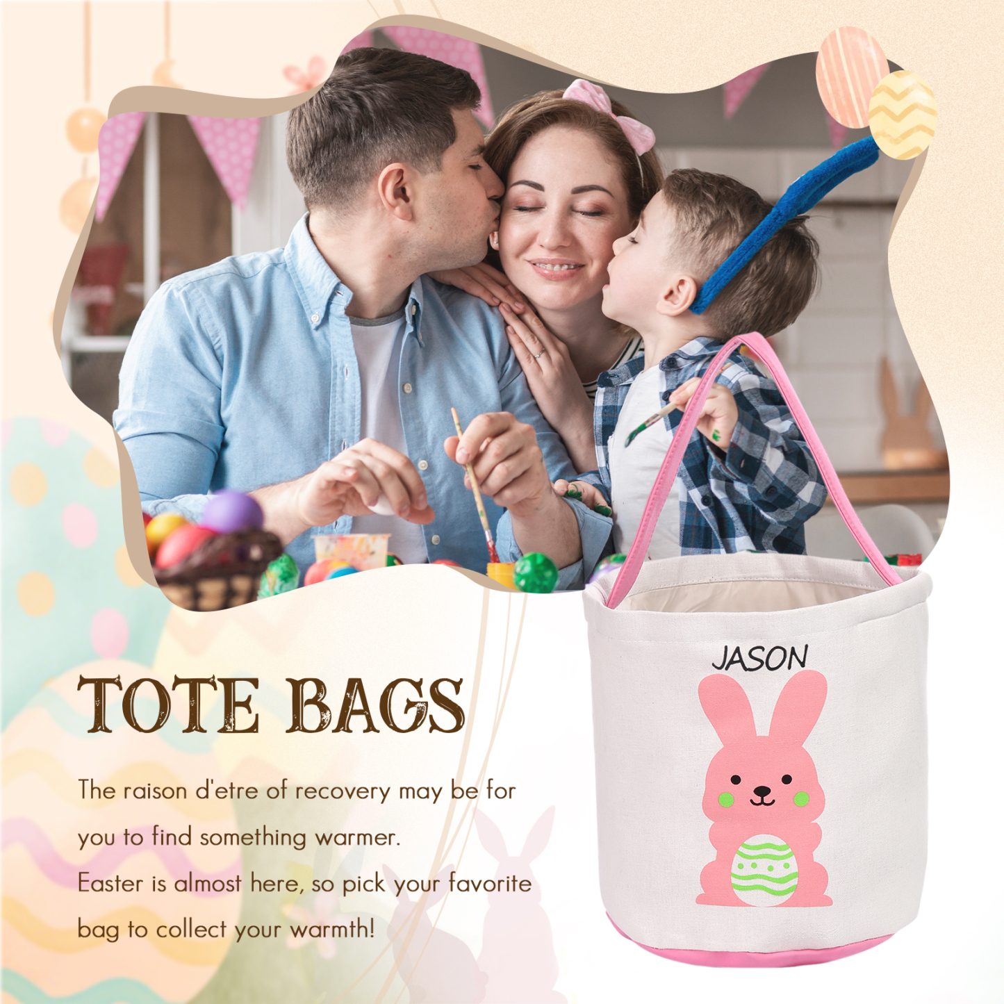 Personalisierbarer Name Ostern Leinwand Hase Korb