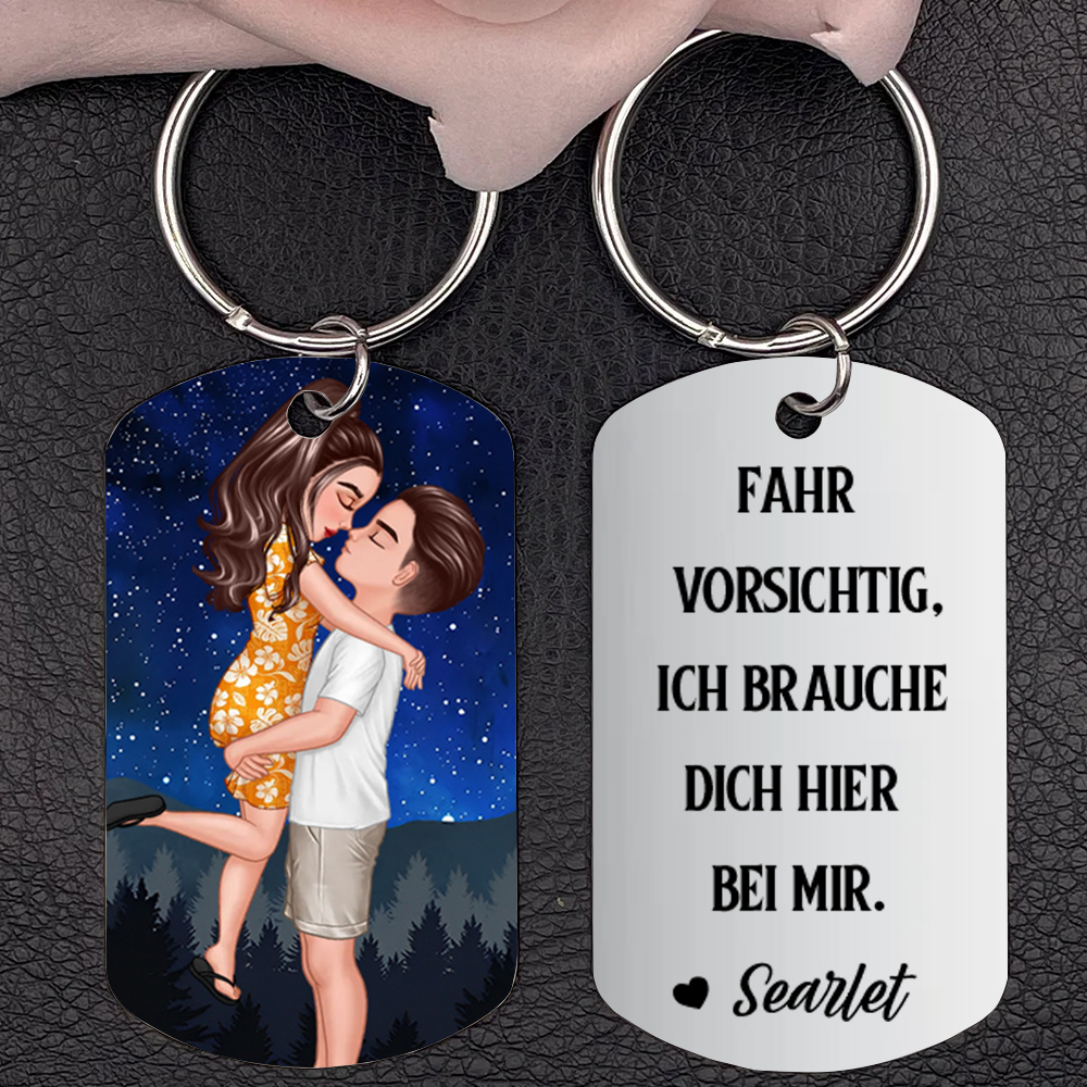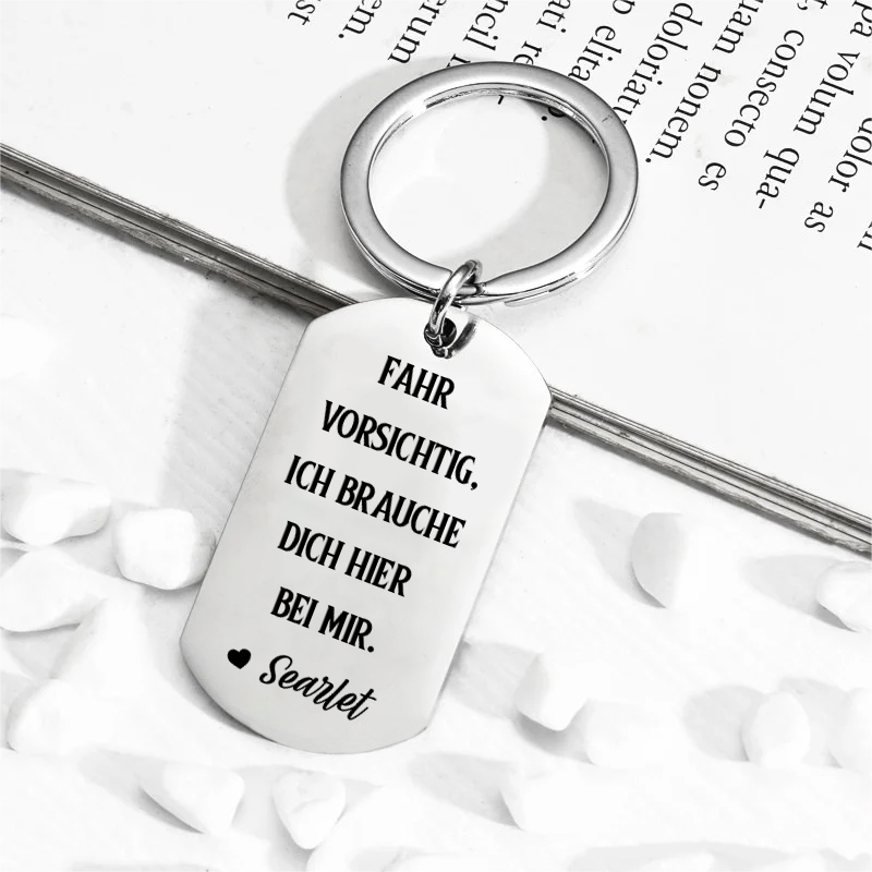 Personalisierbarer Name Paar Schlüsselanhänger-Fahr vorsichtig, ich brauche dich hier bei mir-Geschenk für Freundin/Freund