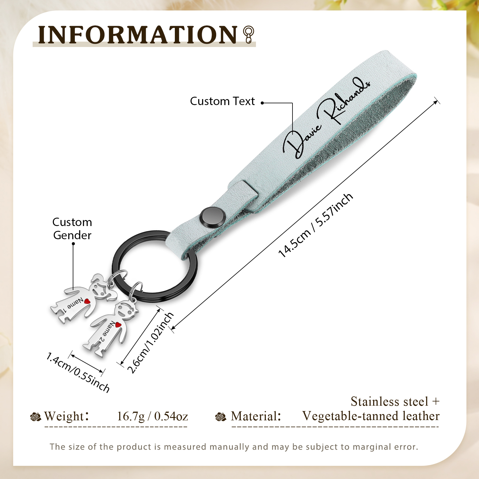 Personalisierbarer Text & 2 Namen Familienmitglied Anhänger Familie Metall Leder Schlüsselanhänger