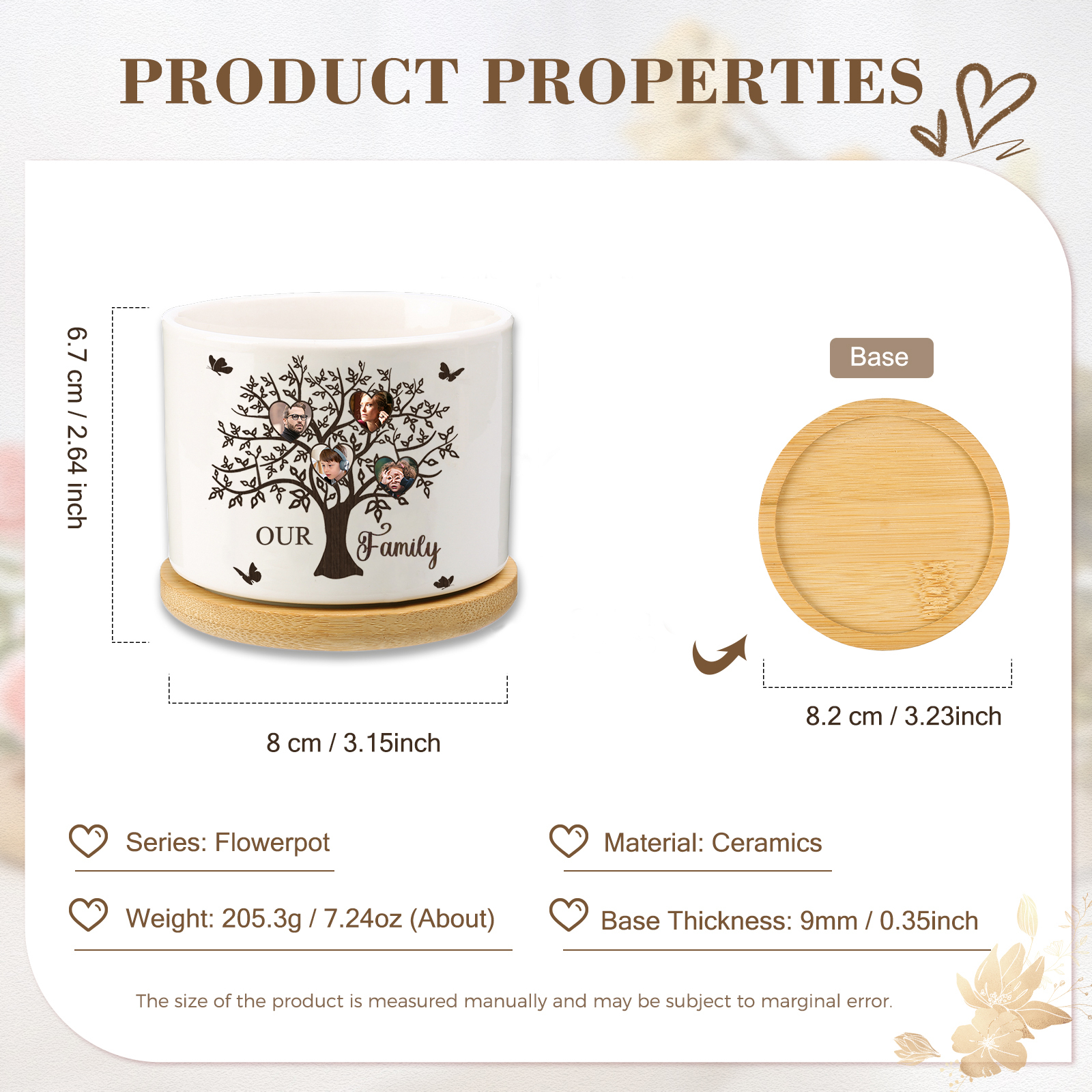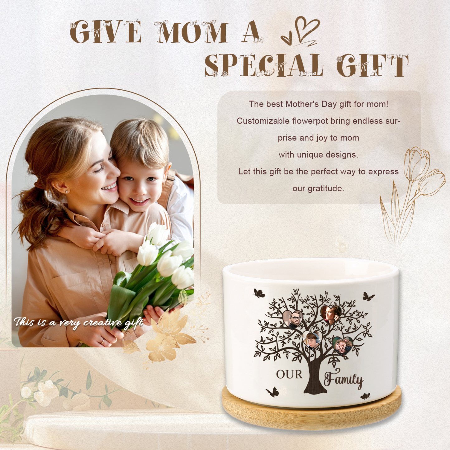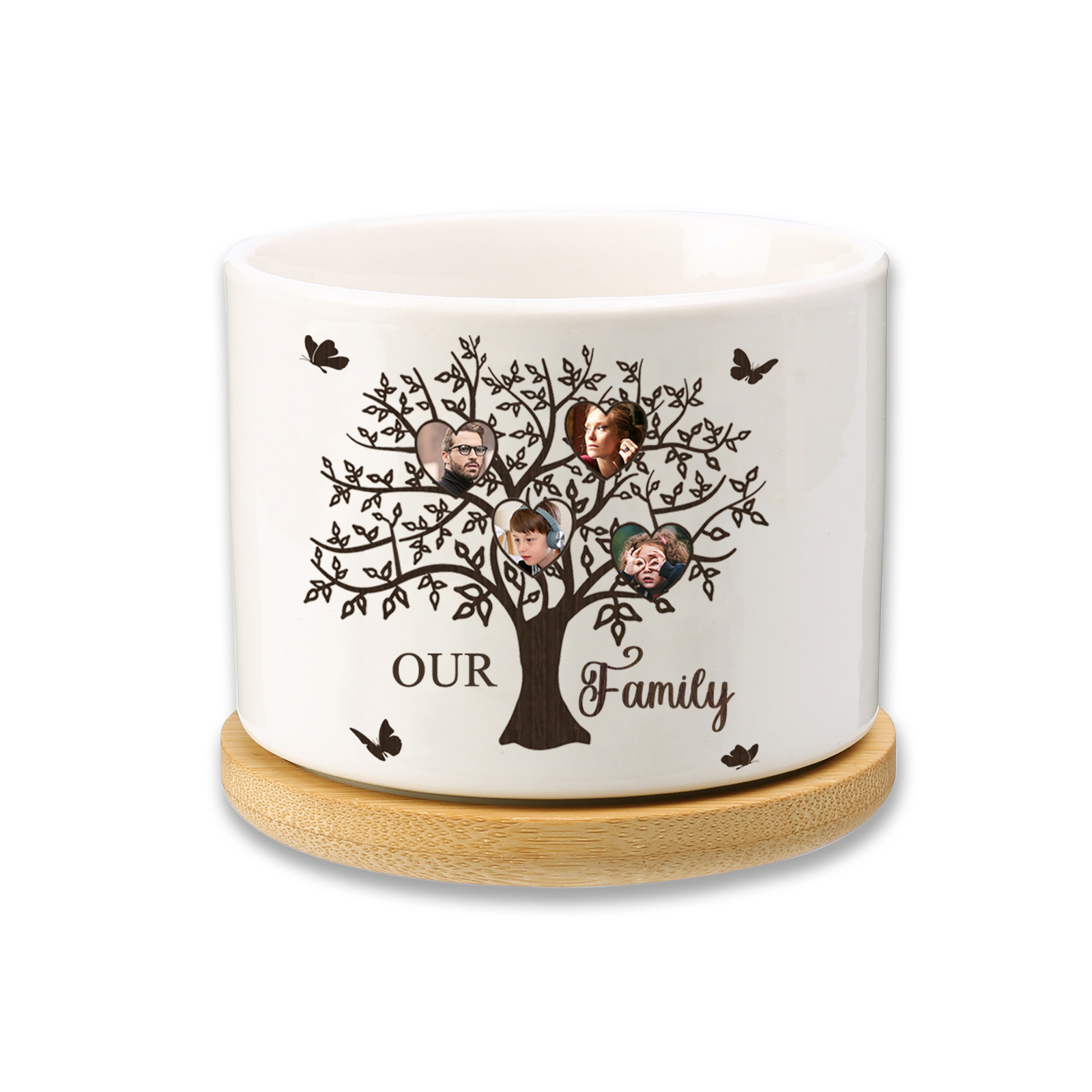 Personalisierbarer Text & 4 Fotos Familienbaum Familie Blumentopf