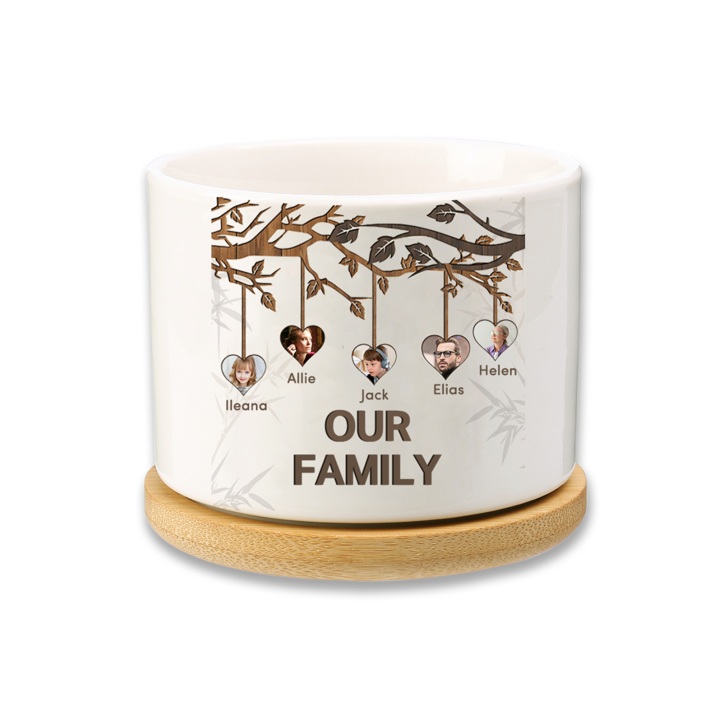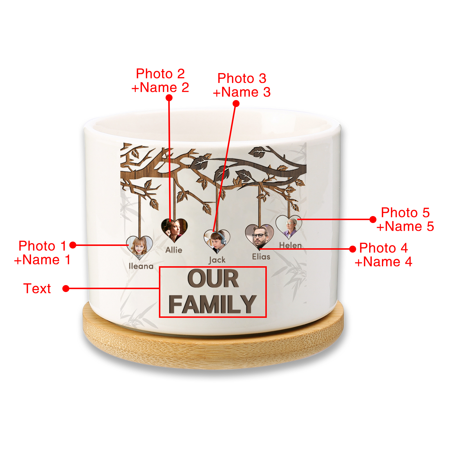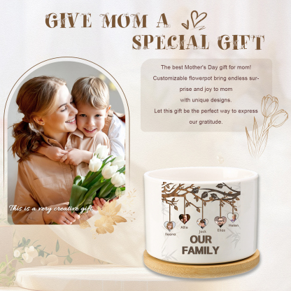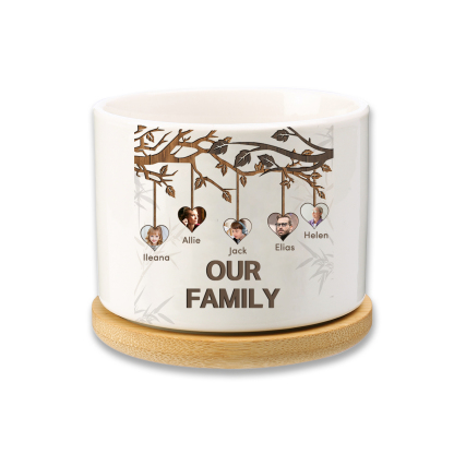 Personalisierbarer Text & 5 Fotos Familienbaum Familie Blumentopf