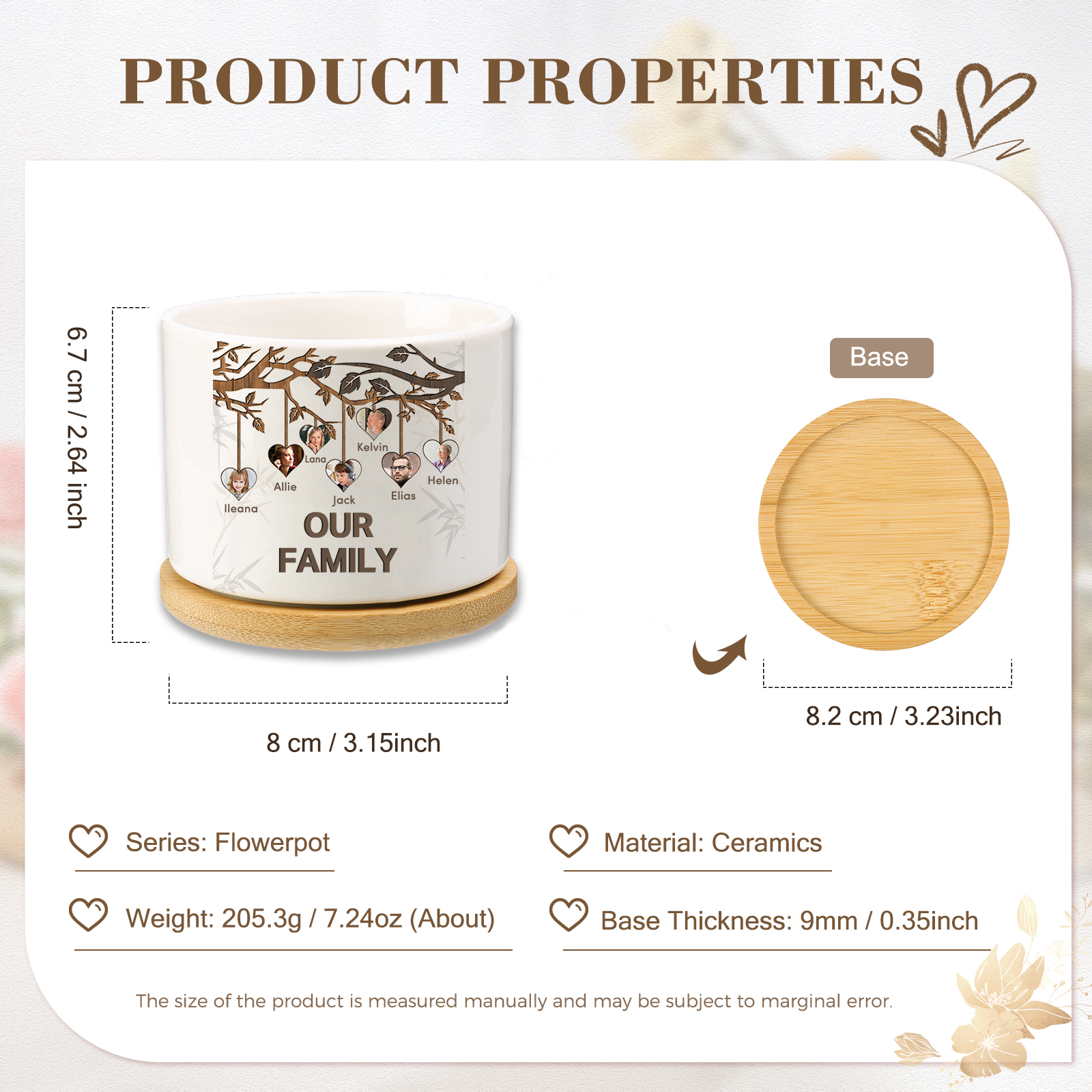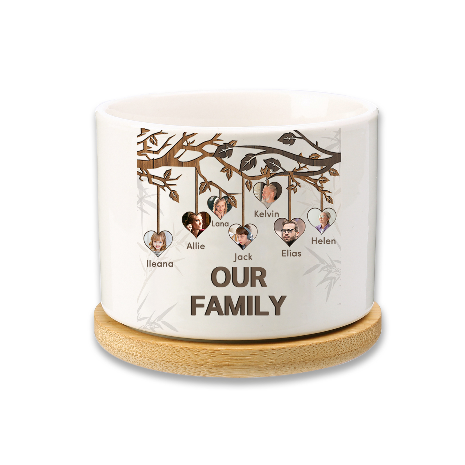 Personalisierbarer Text & 7 Fotos Familienbaum Familie Blumentopf