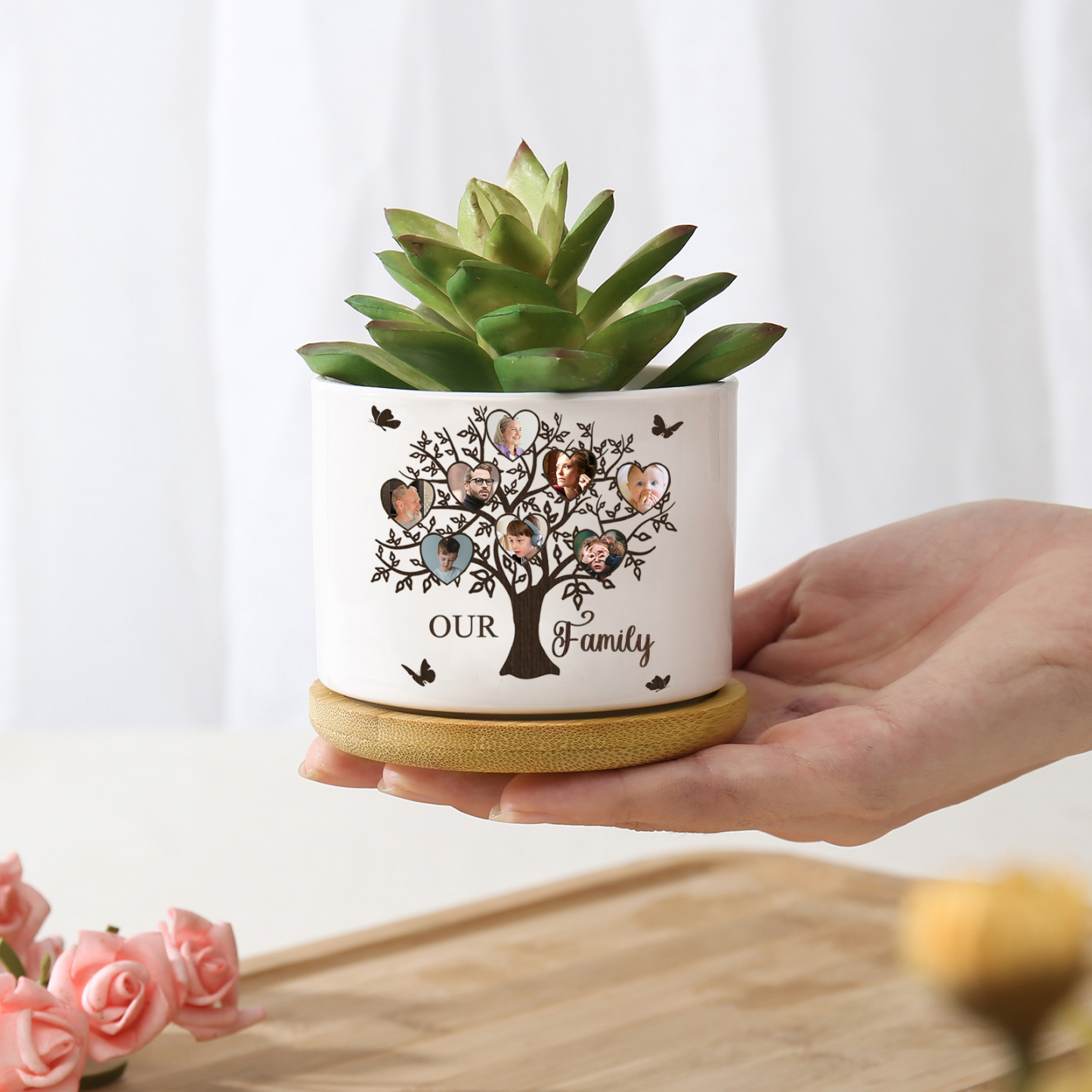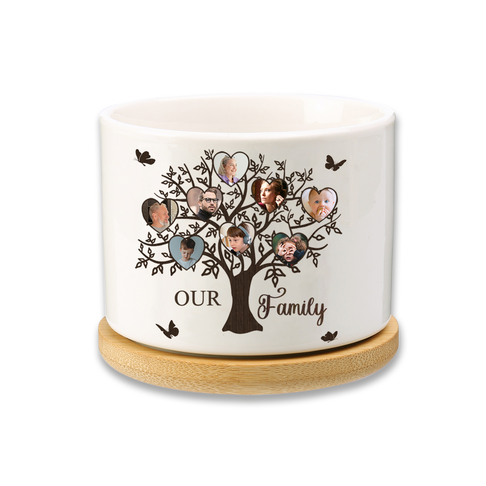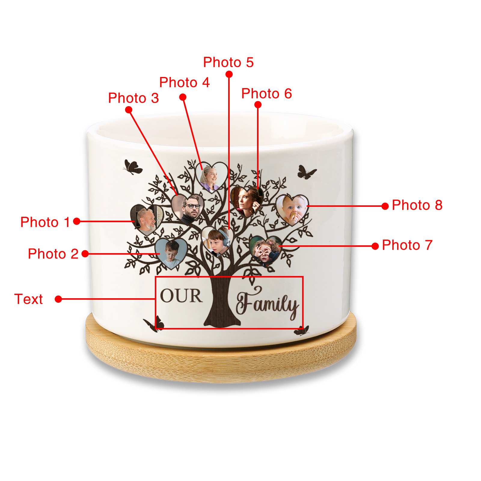 Personalisierbarer Text & 8 Fotos Familienbaum Familie Blumentopf