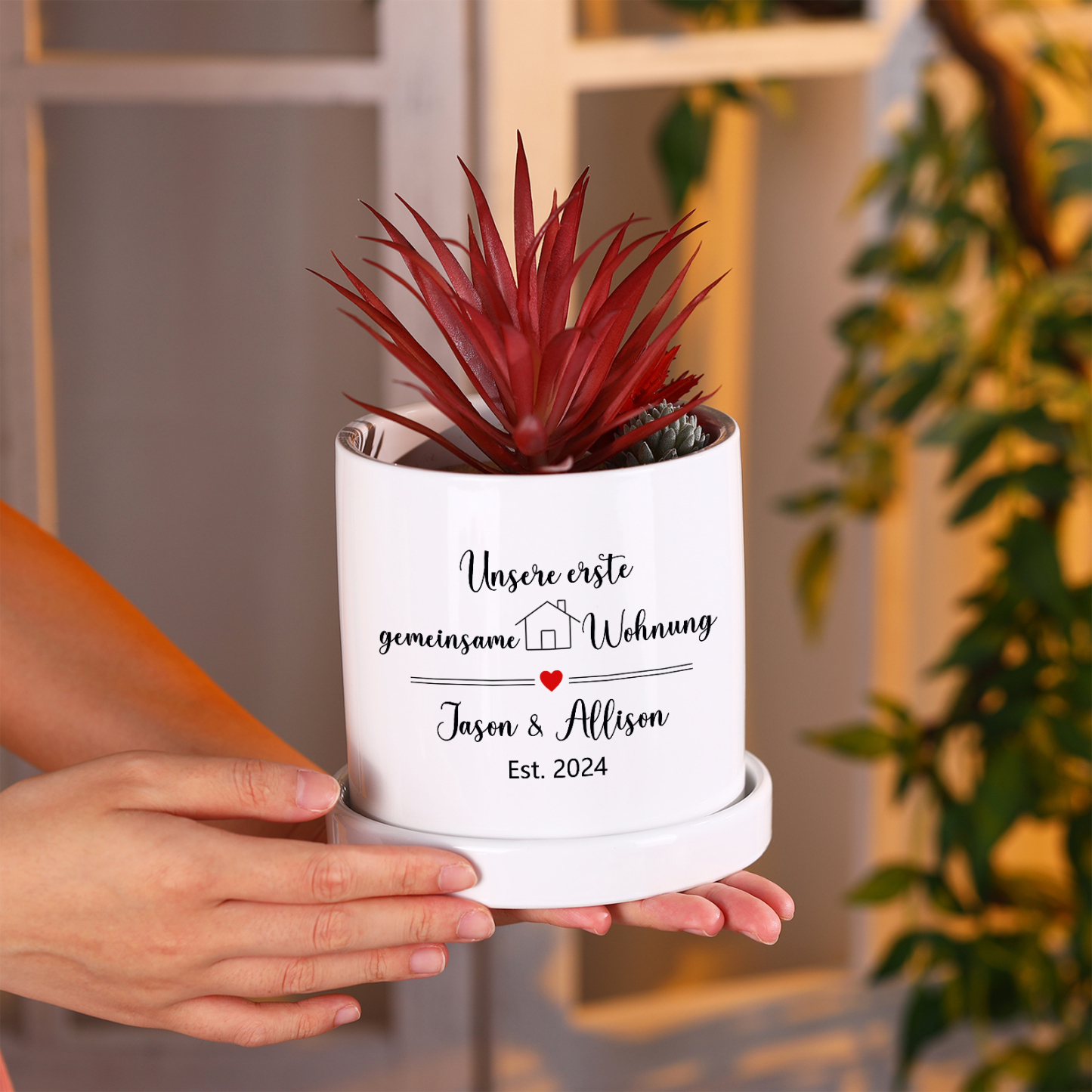 Personalisierbarer Text & Datum Liebespaar Blumentopf Unsere erste gemeinsame Wohnung Einweihungsgeschenk Geschenk für ein neues Zuhause