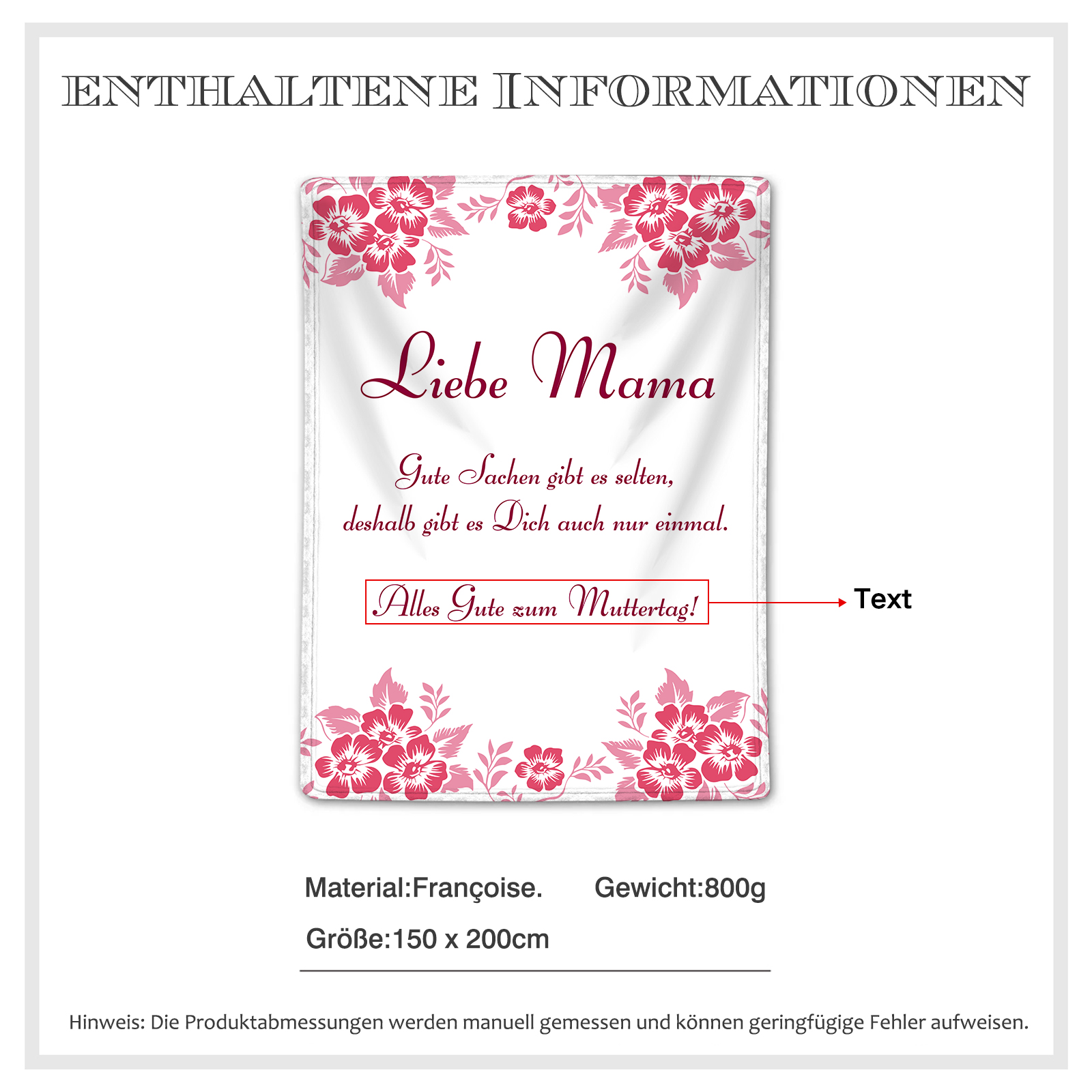 Personalisierbarer Text Decke - Liebe Mama Gute Sachen gibt es selten, deshalb gibt es Dich auch nur einmal- Bestes Geschenk für Mutter