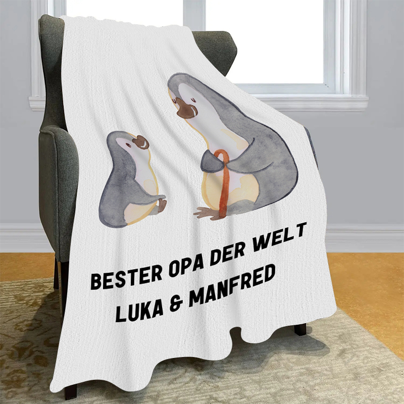 Personalisierbarer Text Pinguin Decke - Bester Opa der Welt- Geschenk für Vater