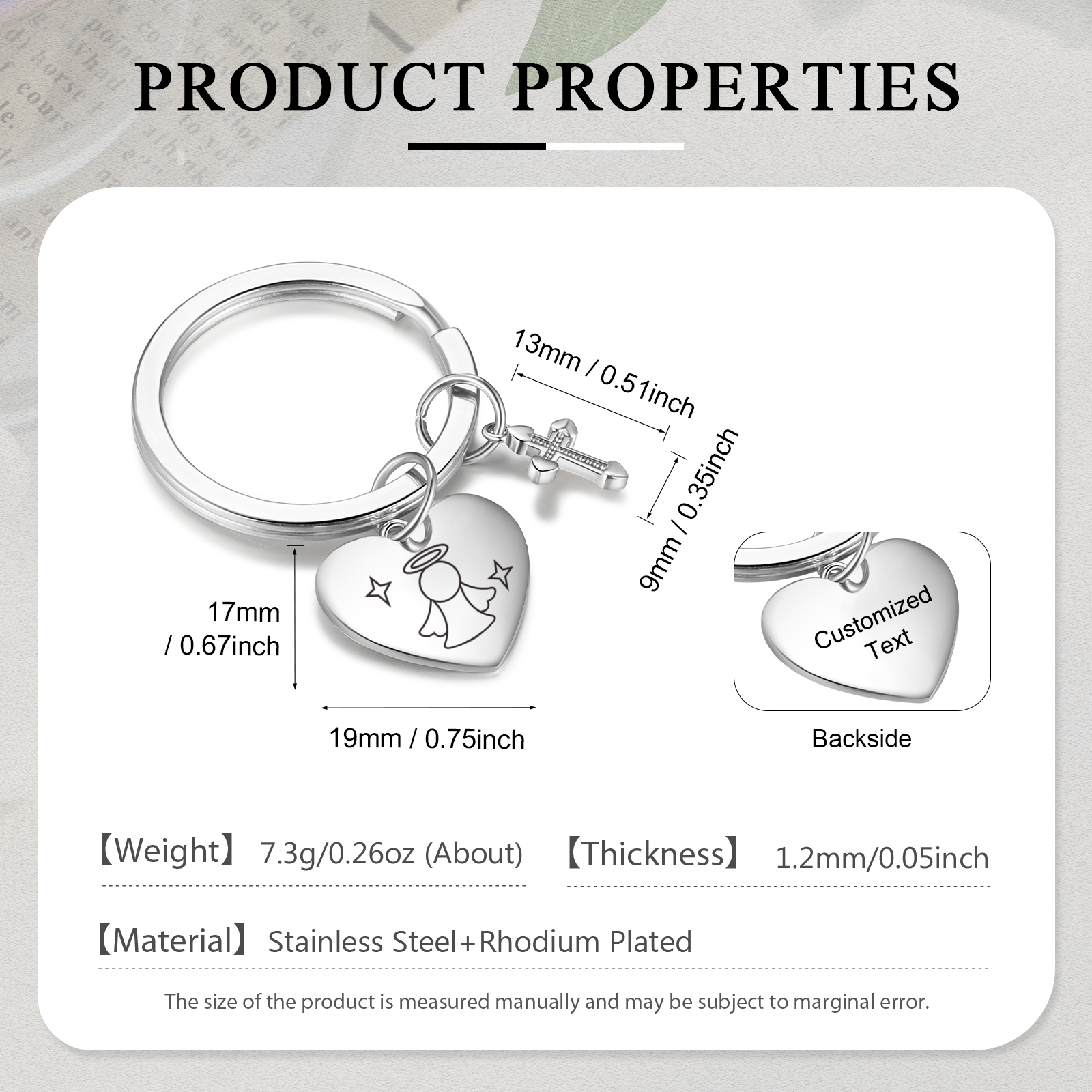Personalisierbarer Text Schutzengel Kruez Schlüsselanhänger