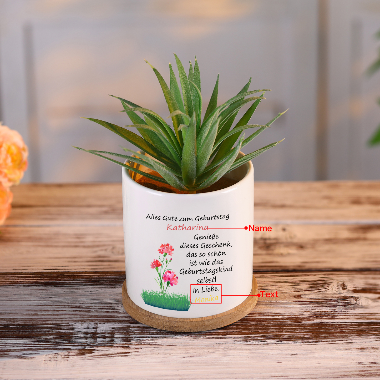 Personalisierbarerer 1 Name & Text Blumentopf - Alles Gute zum Geburtstag - Geburtstag Geschenk
