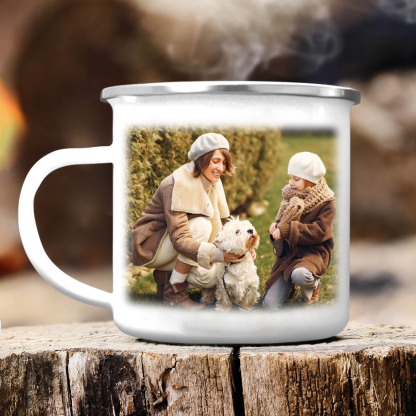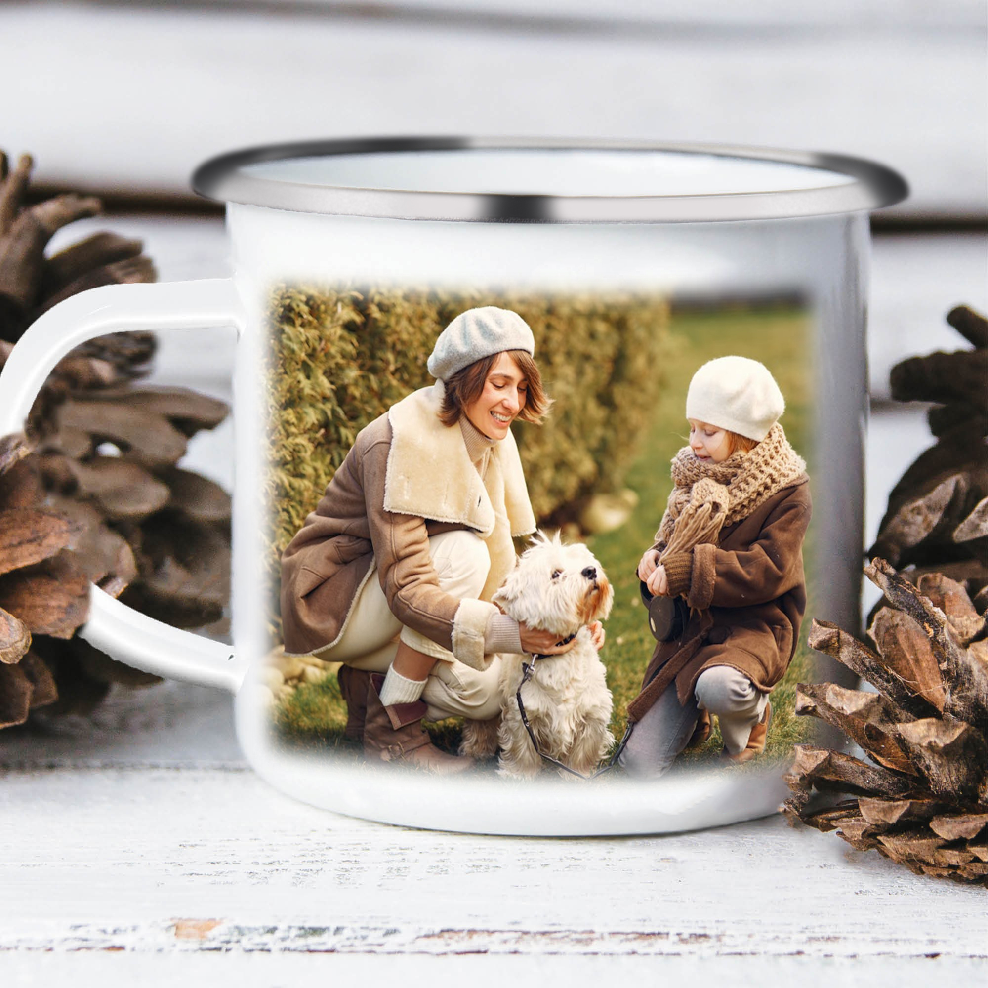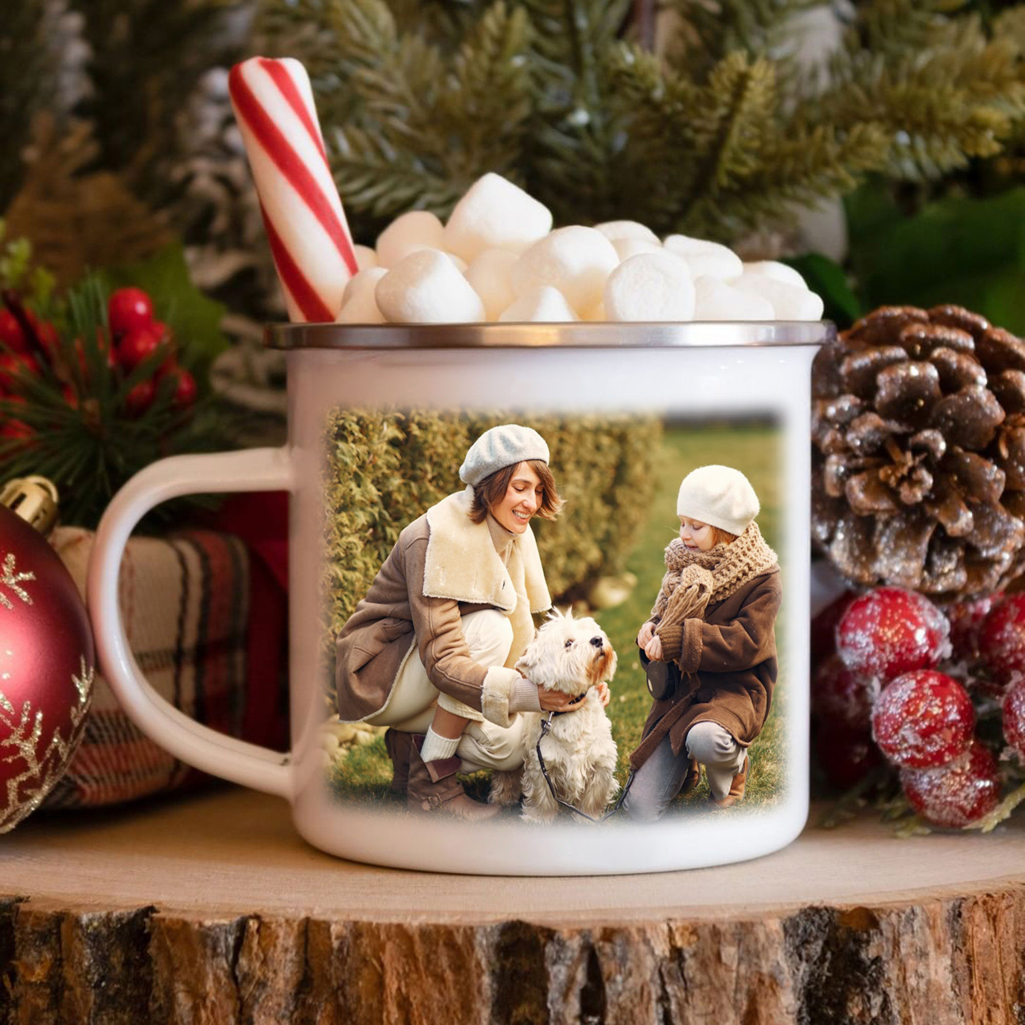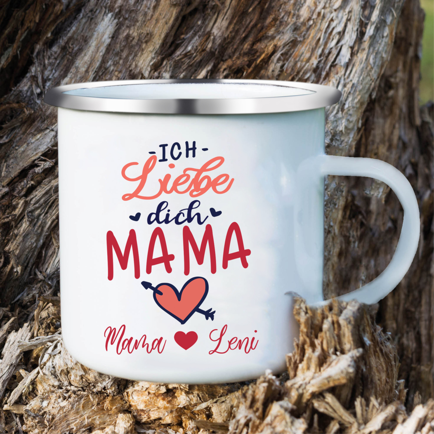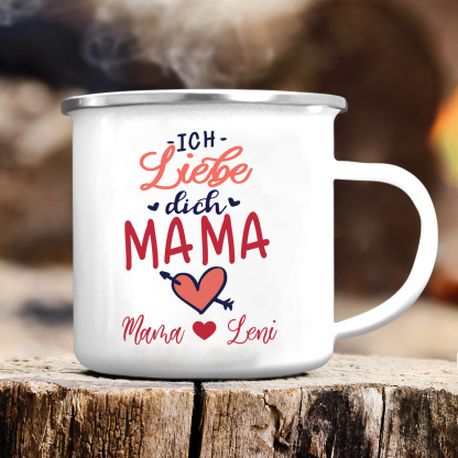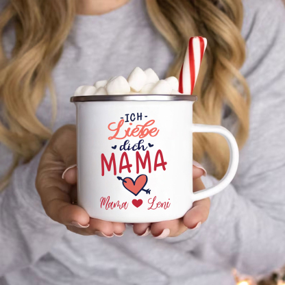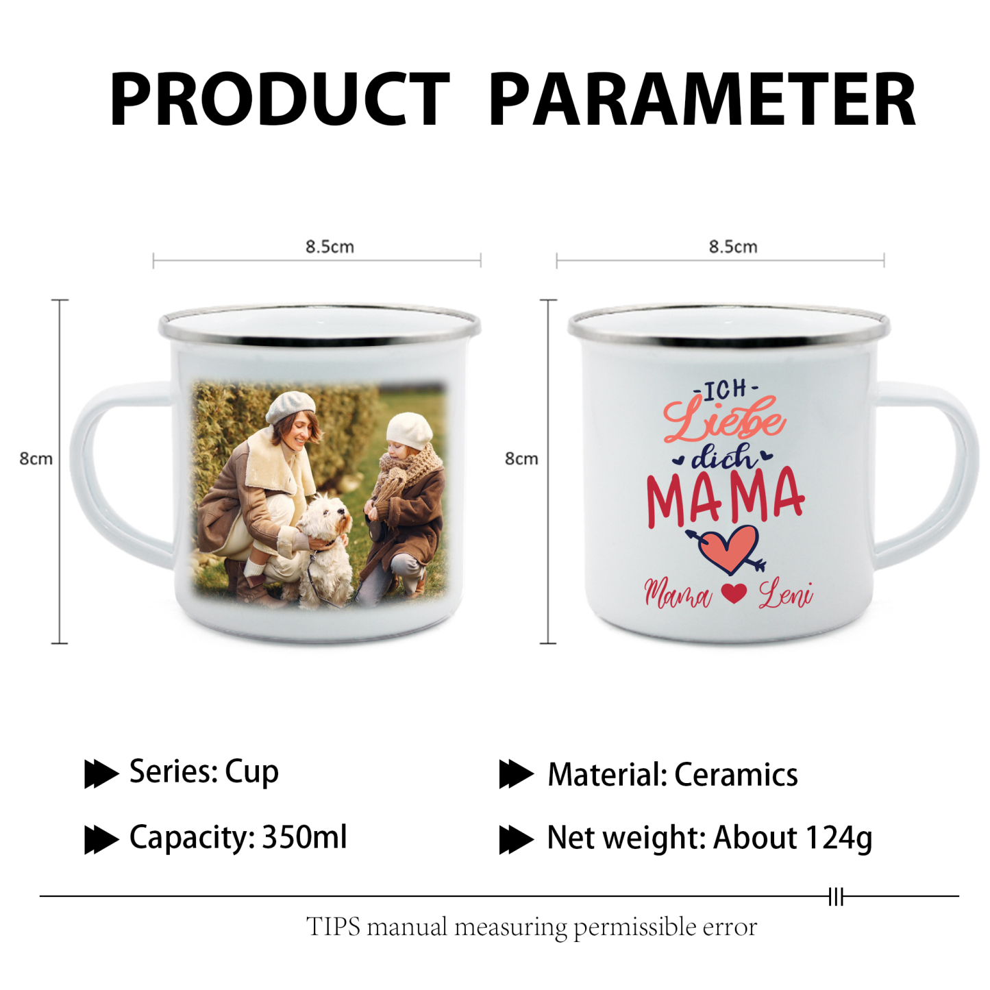 Personalisierbares Foto & 2 Namen Emaille Tasse -Ich liebe dich Mama- Emaille Becher für Mutter