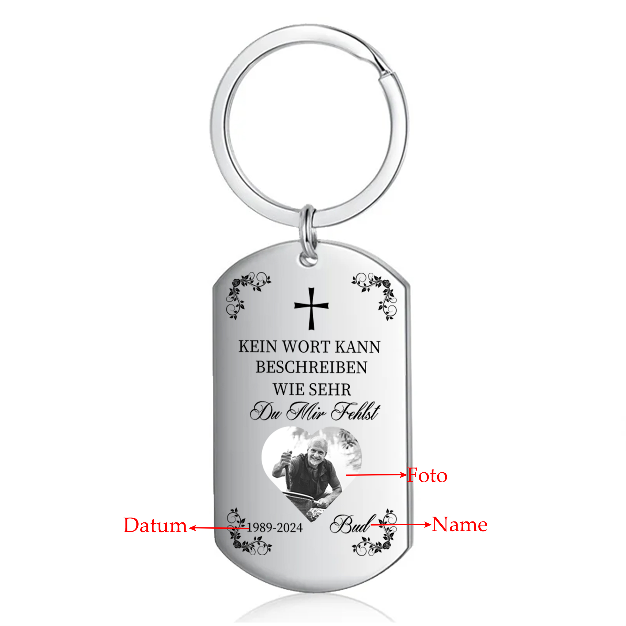 Personalisierbares Foto & Name & Jahr Trauer Schlüsselanhänger-Kein Wort kann beschreiben wie sehr du mir fehlst-Andenken Schlüsselanhänger