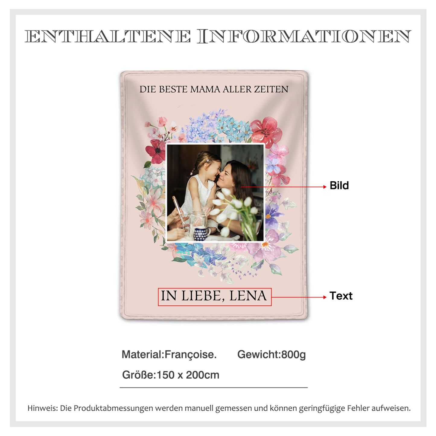 Personalisierbares Foto & Text Decke - Die beste Mama aller Zeiten - Bestes Geschenk für Mutter