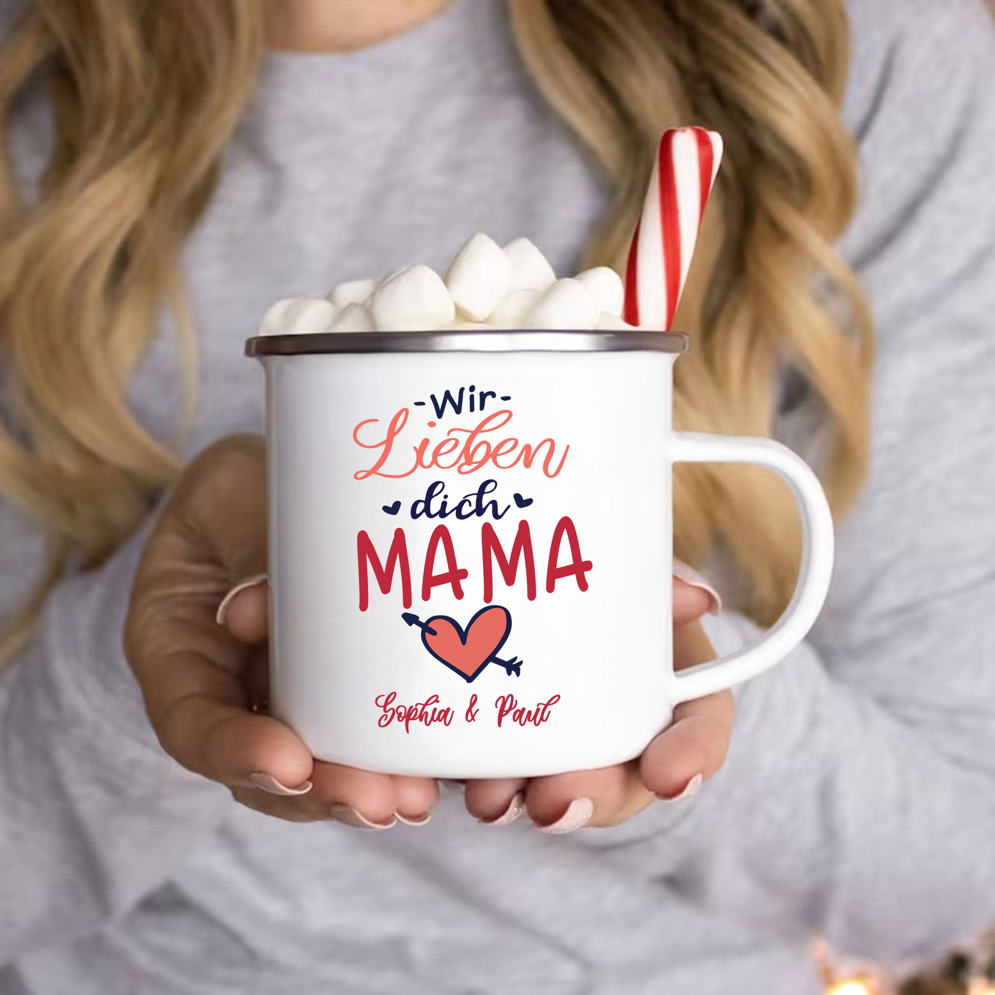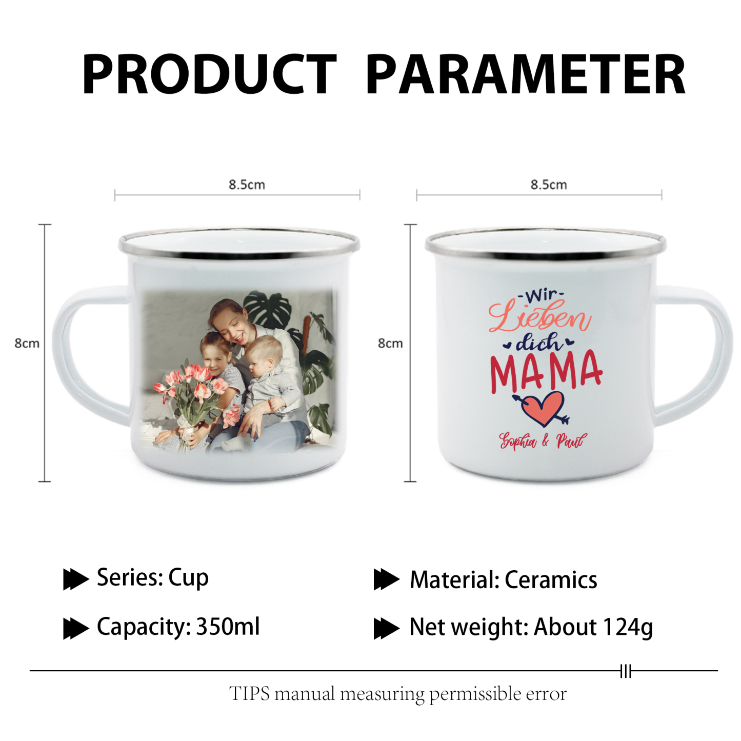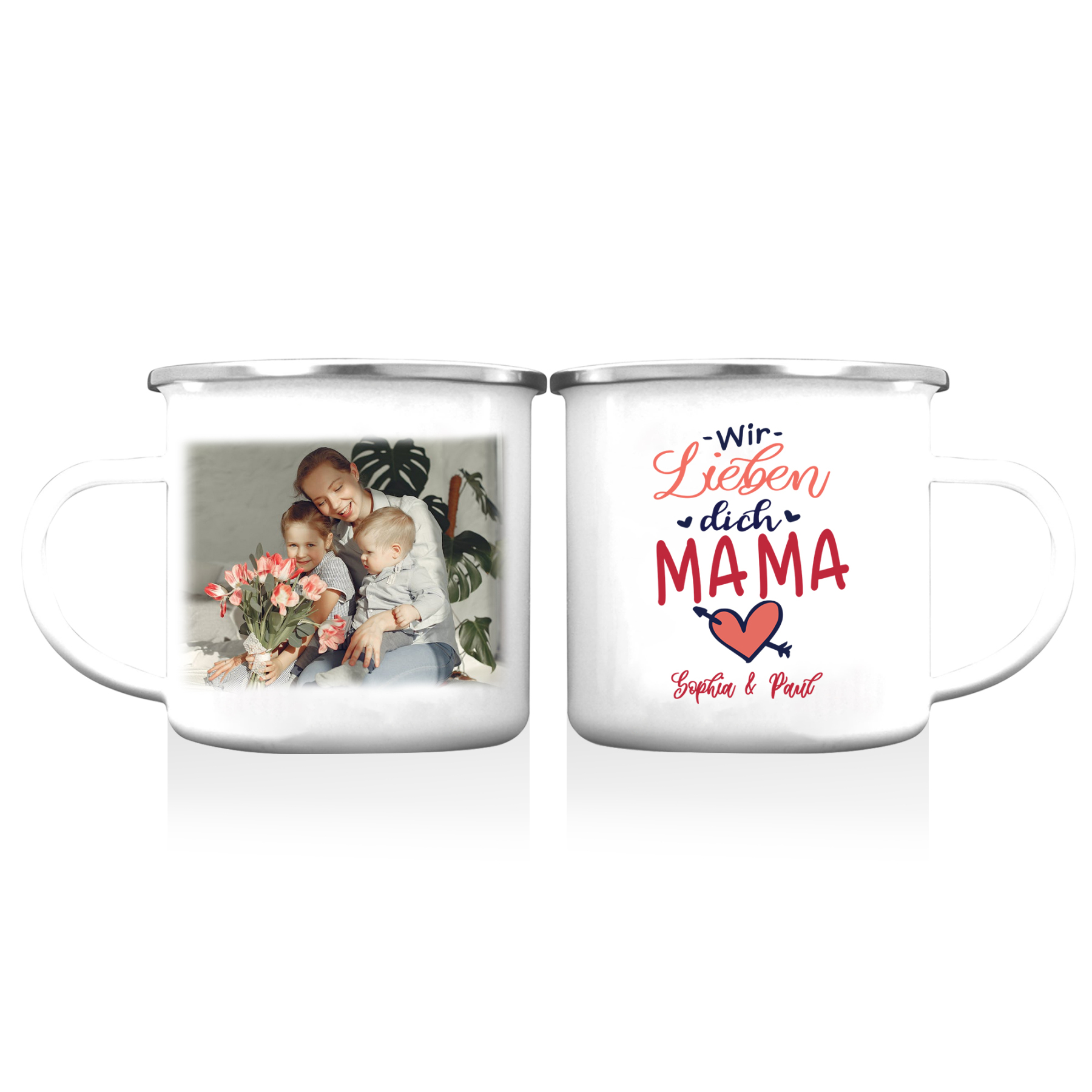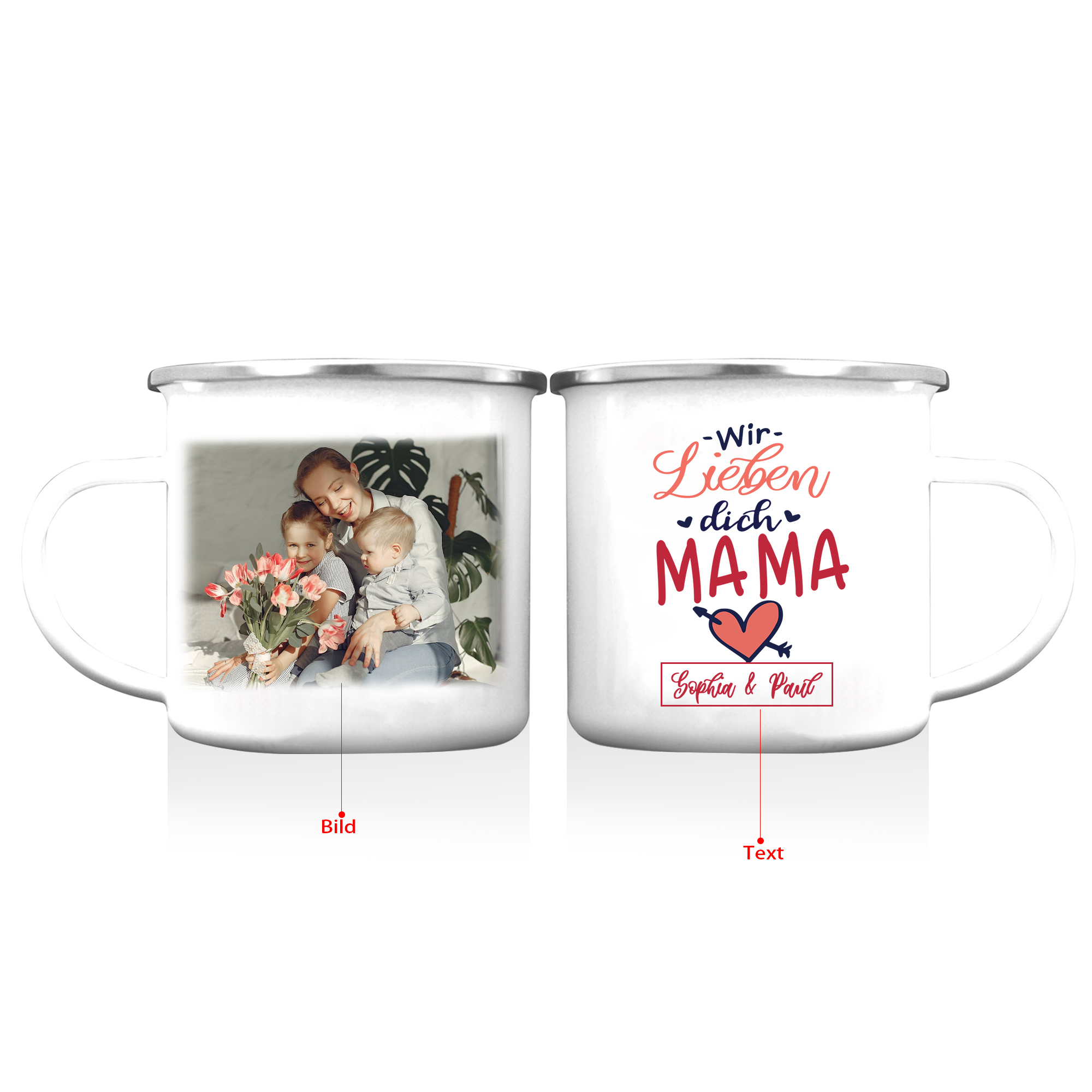 Personalisierbares Foto & Text Emaille Tasse -Wir lieben dich Mama- Emaille Becher für Mutter