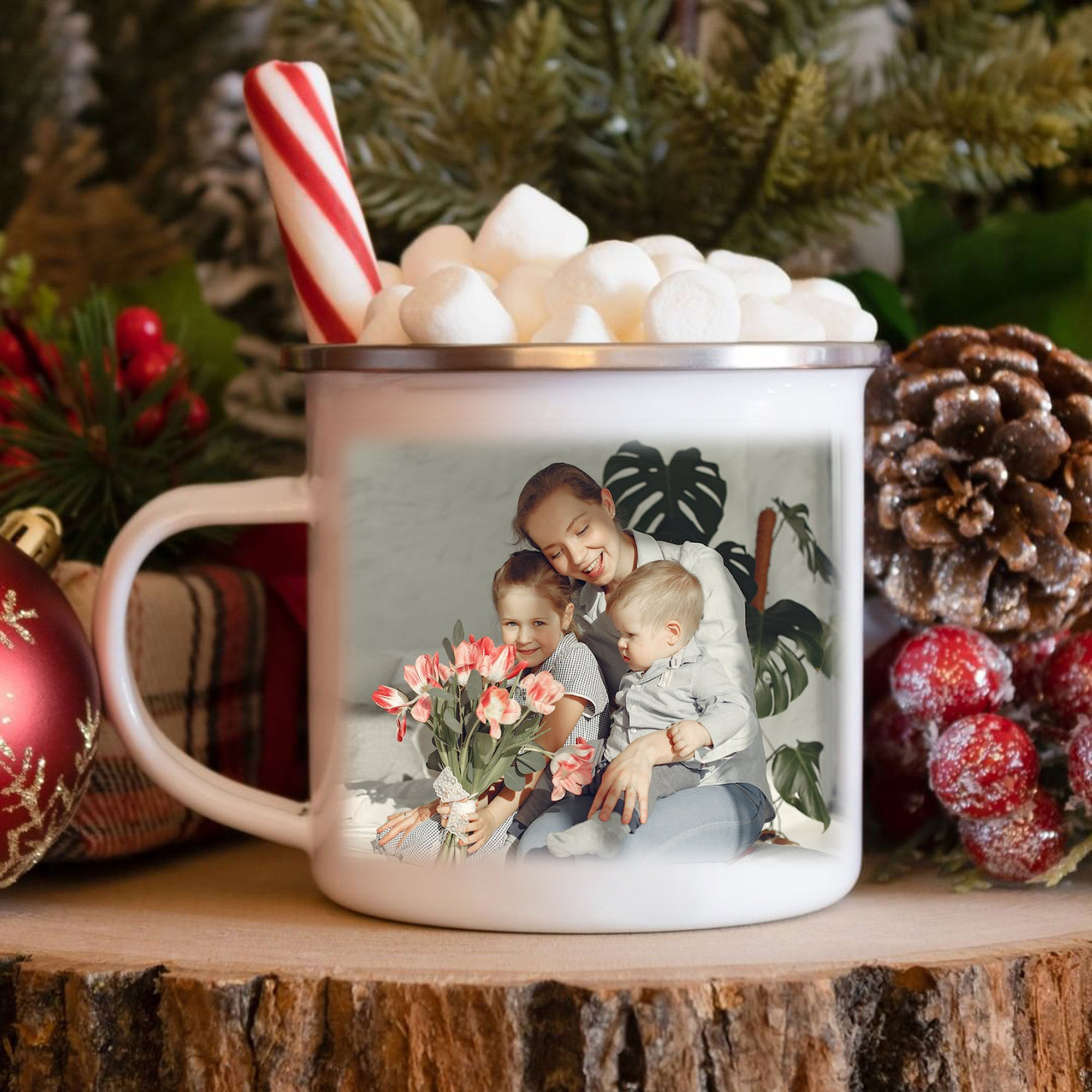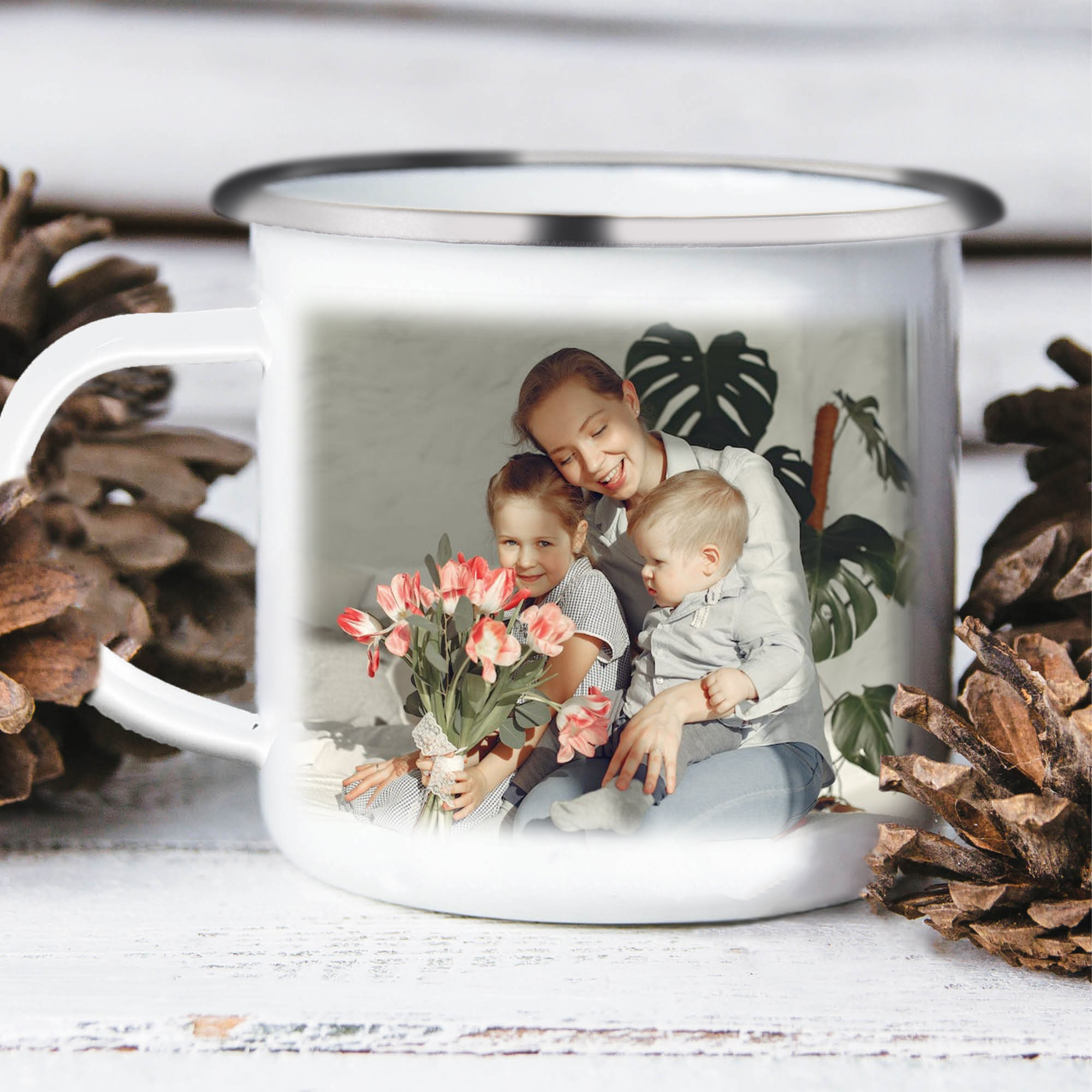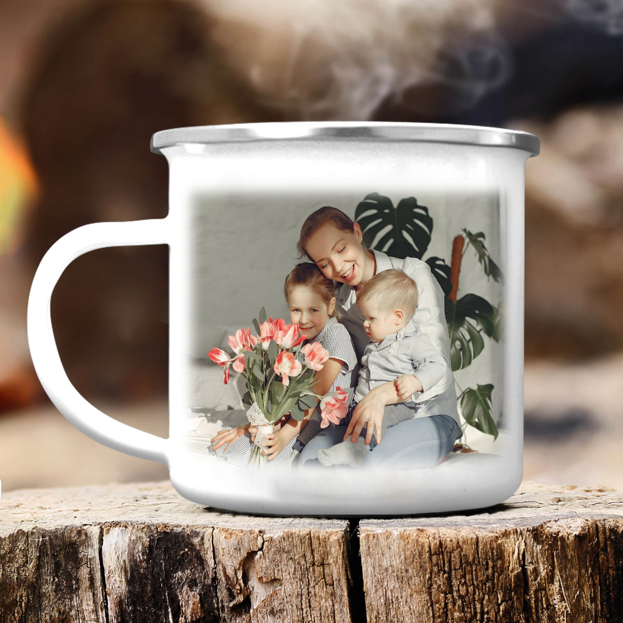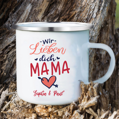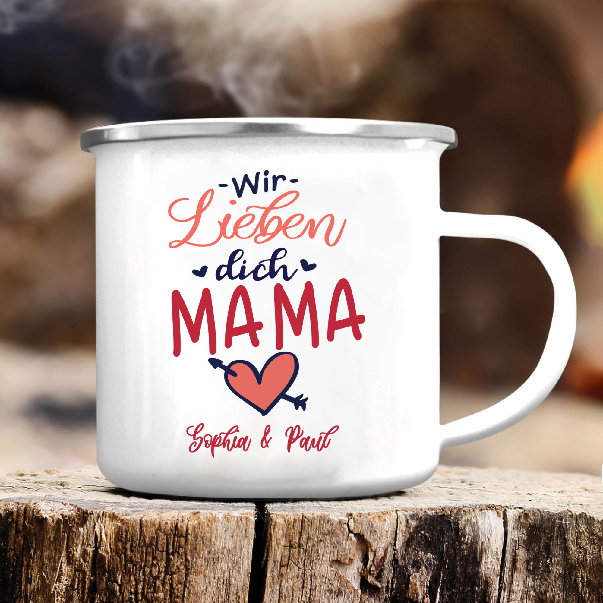 Personalisierbares Foto & Text Emaille Tasse -Wir lieben dich Mama- Emaille Becher für Mutter