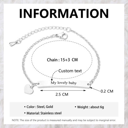 Personalisierbares Text Herz Babyarmband zur Taufe