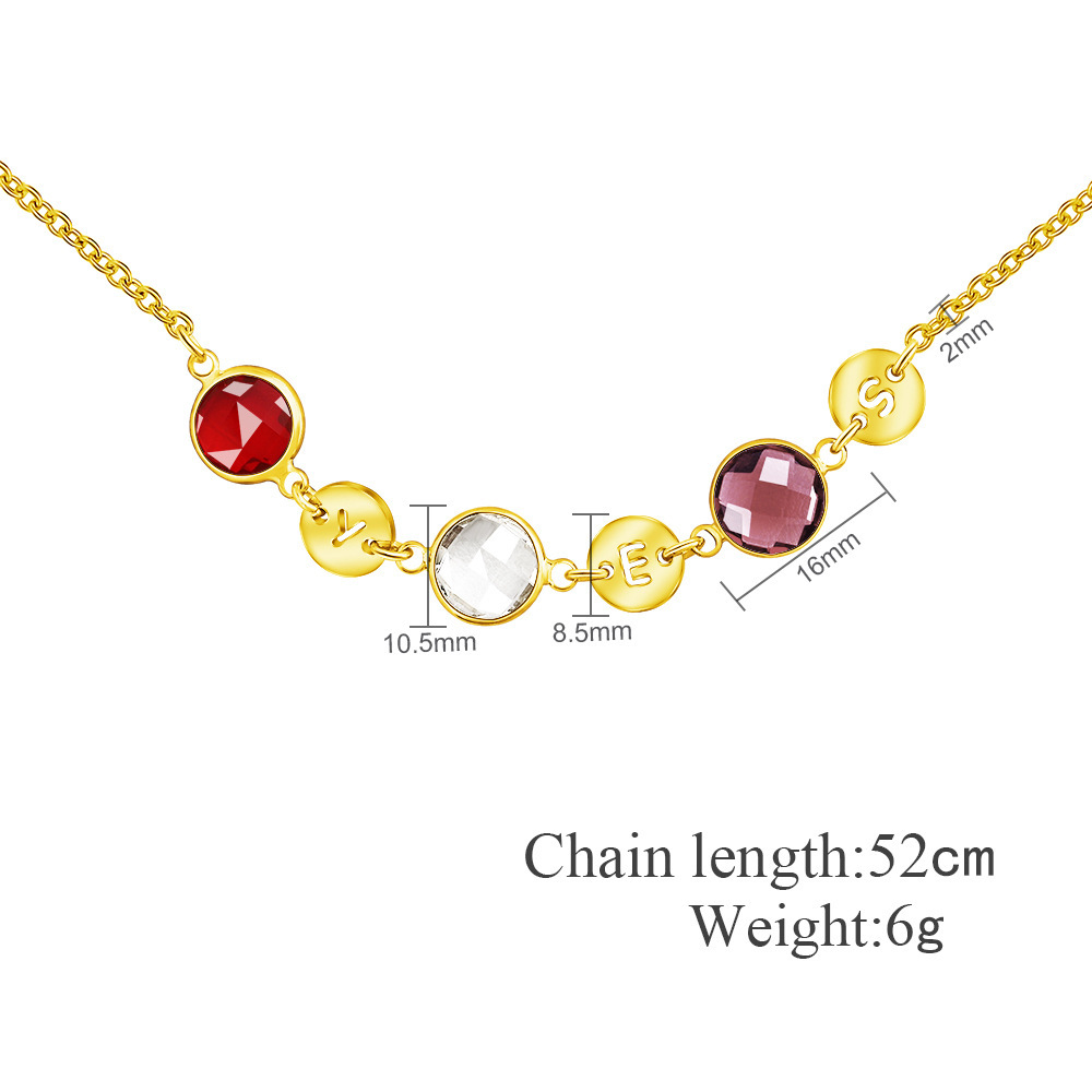 Personalisierte 1 Buchstabe Rund Anhänger Halskette mit Geburtsstein