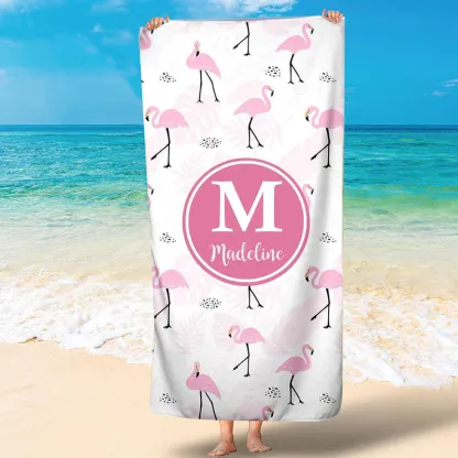 Personalisierte 1 Name & Buchstabe Flamingo Sommer Strandtuch Decke