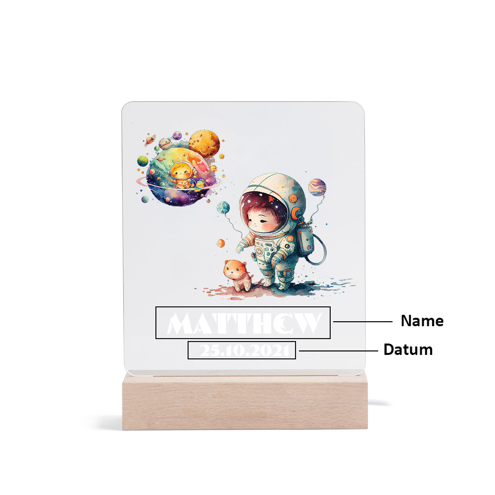 Personalisierte 1 Name & Datum Astronaut Acryl Nachtlicht für Kinder zum Schulanfang