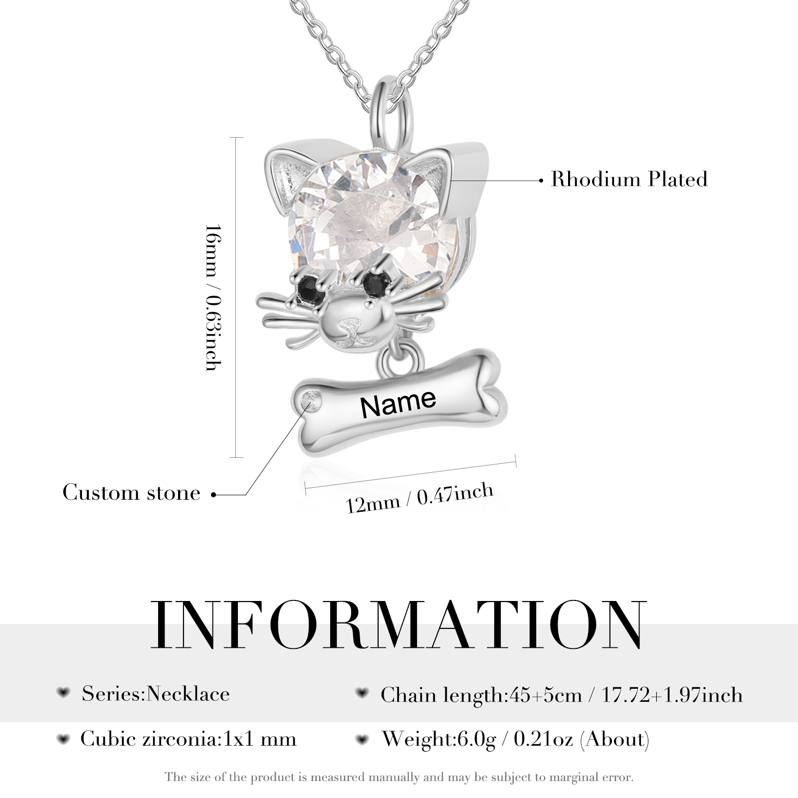 Personalisierte 1 Name Katze Halskette mit Geburtsstein