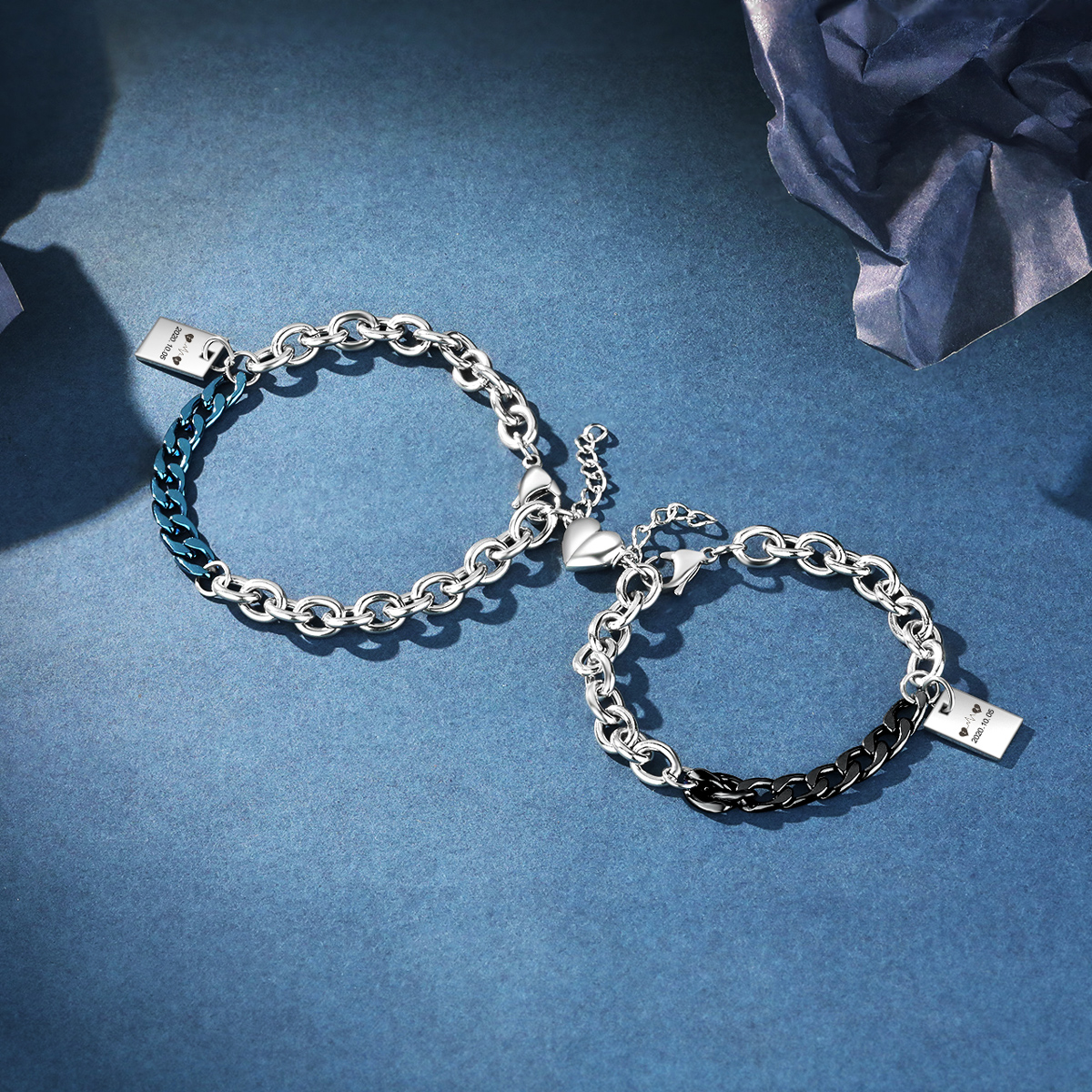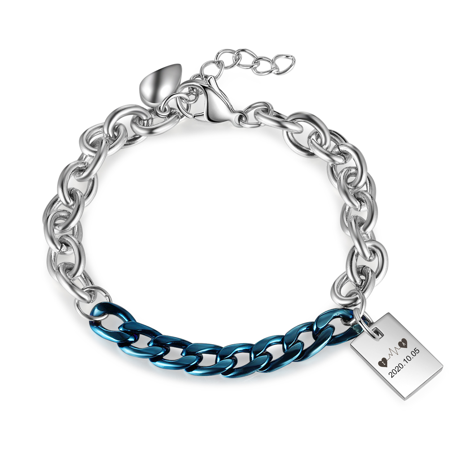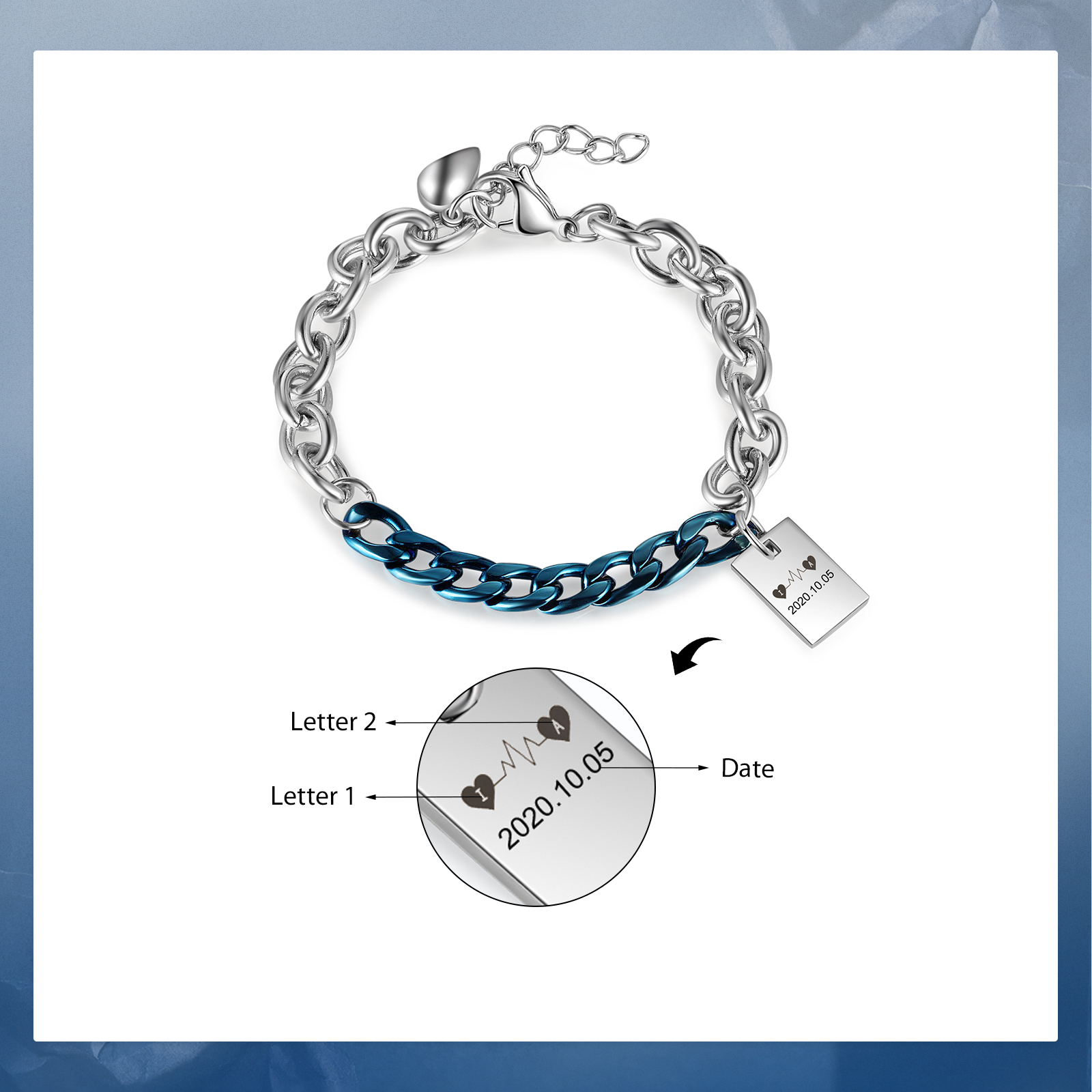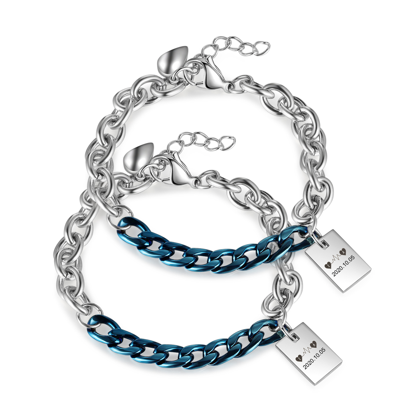 Personalisierte 2 Buchstabe & Datum Paar Edelstahl Kubanische Armbänder Set