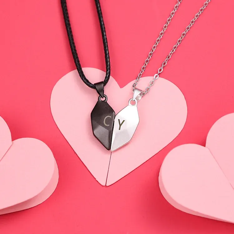 Personalisierte 2 Buchstaben Herz Halskette für Paar Magnetische Halskette passende Halsketten