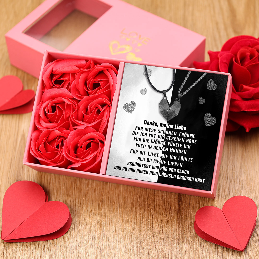 Personalisierte 2 Buchstaben Herz Magnetische Halskette-Danke, meine Liebe-Geschenk mit Nachrichtenkarte