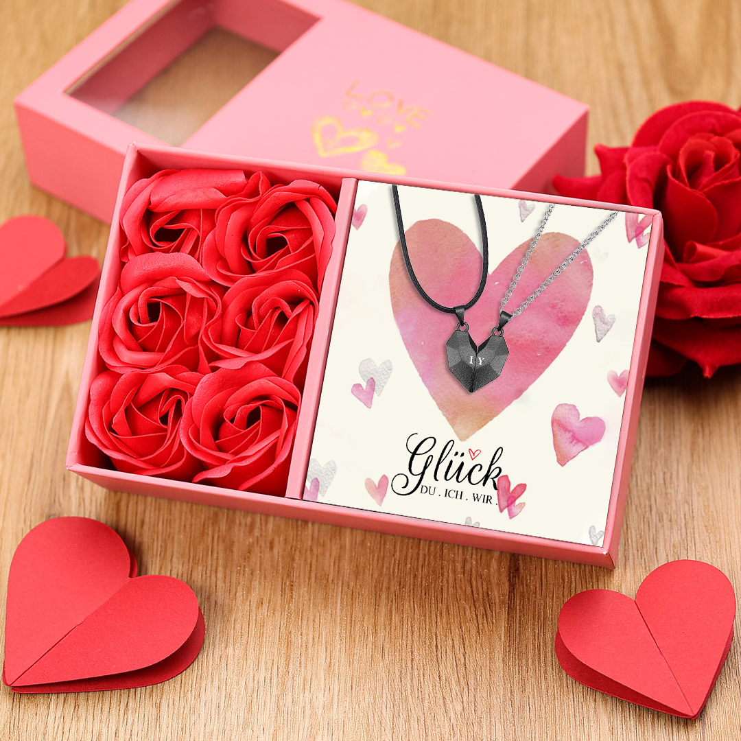 Personalisierte 2 Buchstaben Herz Magnetische Halskette-Glück, Du, Ich, Wir-Geschenk mit Nachrichtenkarte