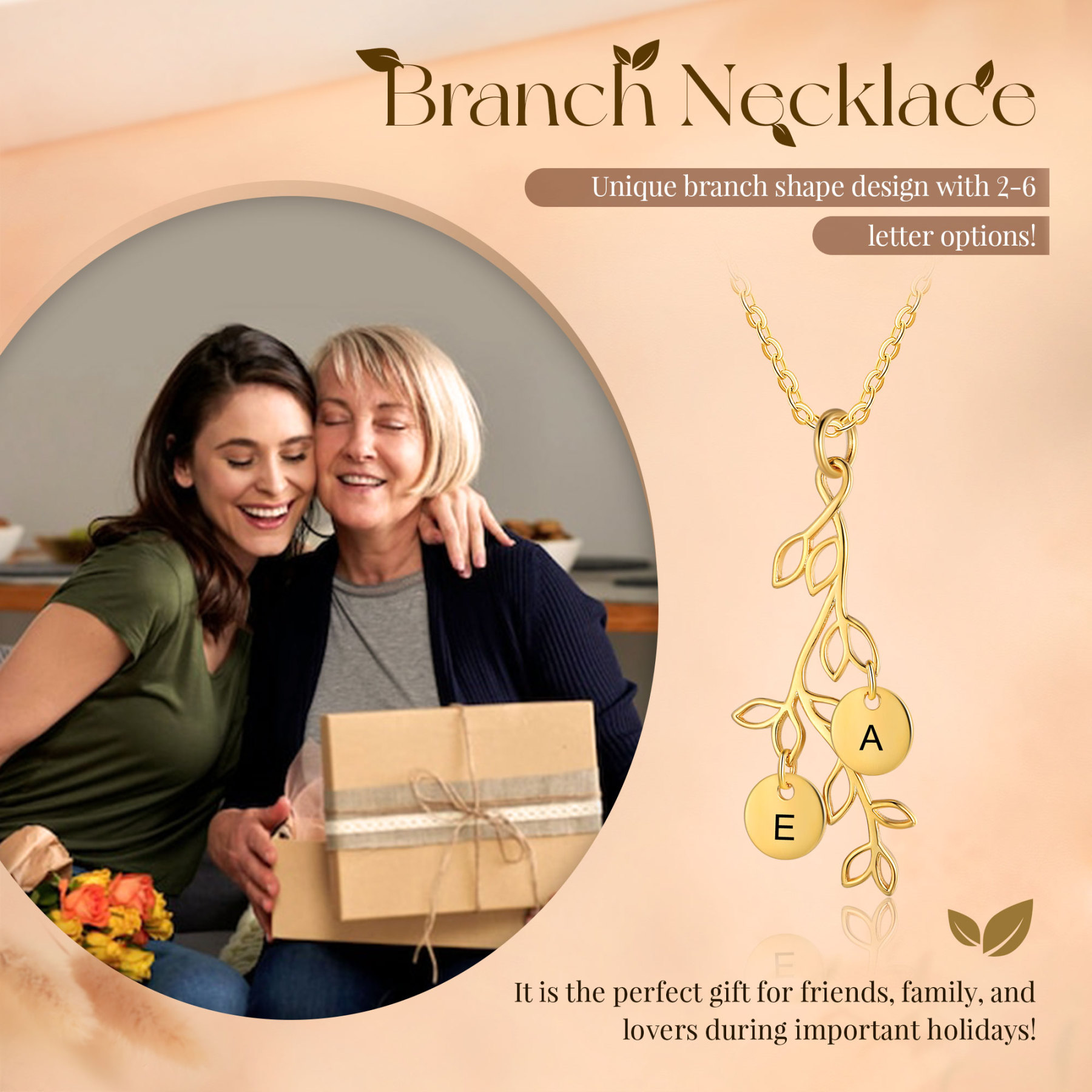 Personalisierte 2 Buchstaben Zweige mit runder Anhänger Golden Halskette