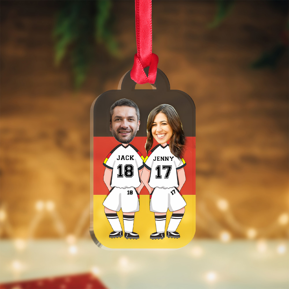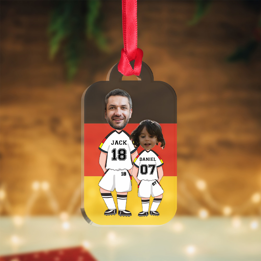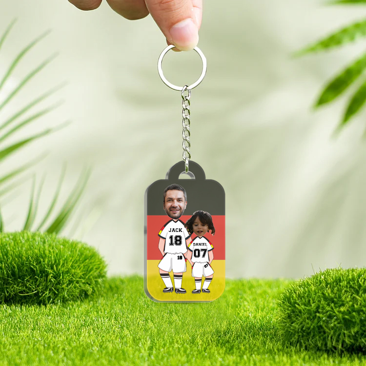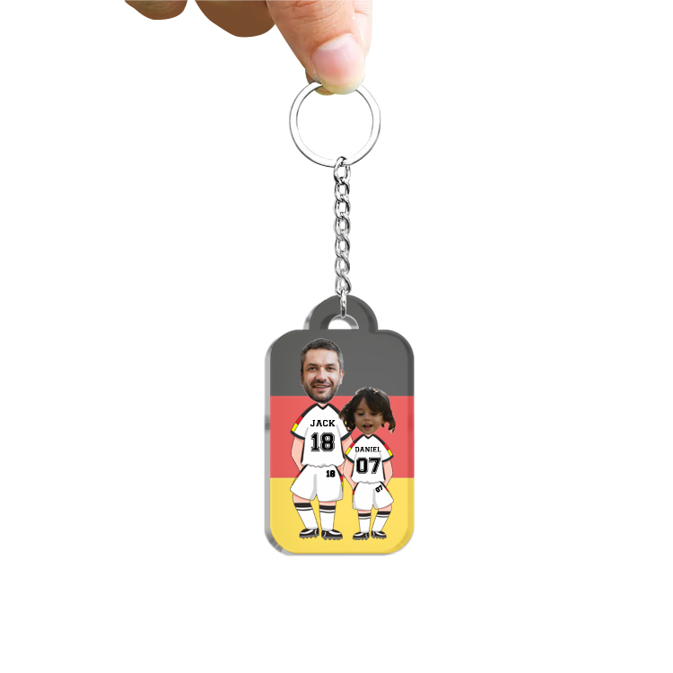 Personalisierte 2 Fotos & 6 Texte Fußballmannschaft Acryl Ornament/Schlüsselanhänger mit Schlüsselring