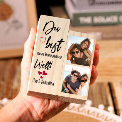 Personalisierte 2 Fotos & Text Kerzenhalter- Du bist meine kleine perfekte Welt-Geschenk für Paare