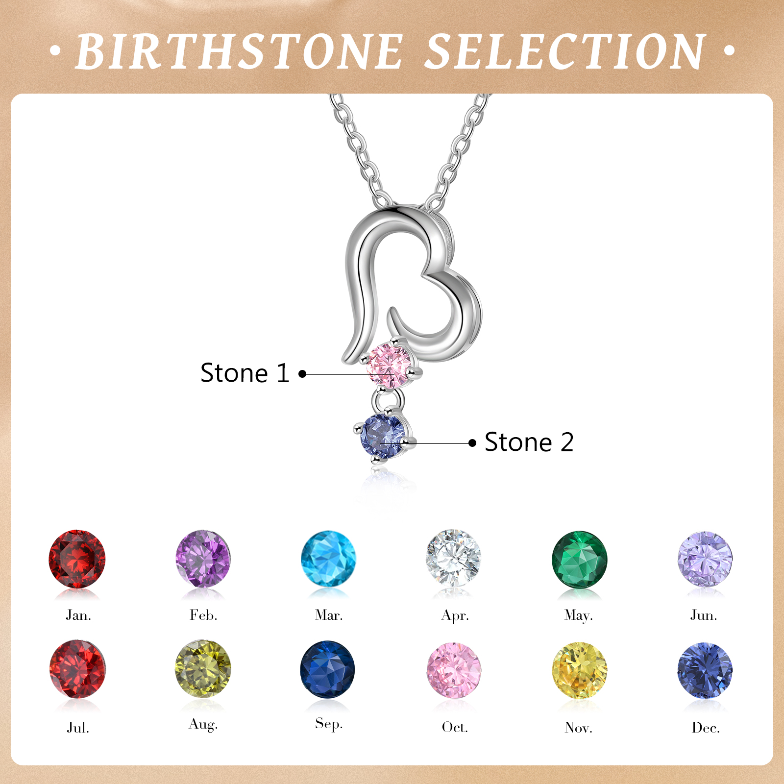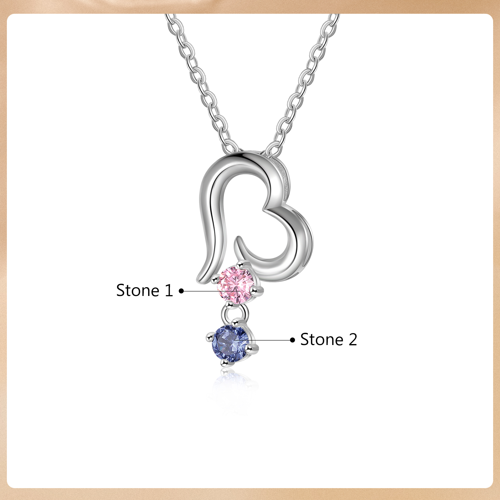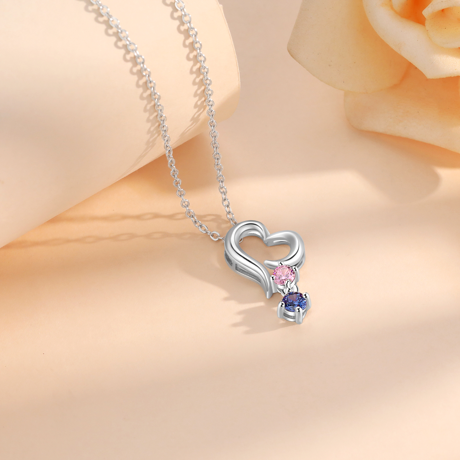 Personalisierte 2 Geburtssteine Herz Halskette für Großmutter