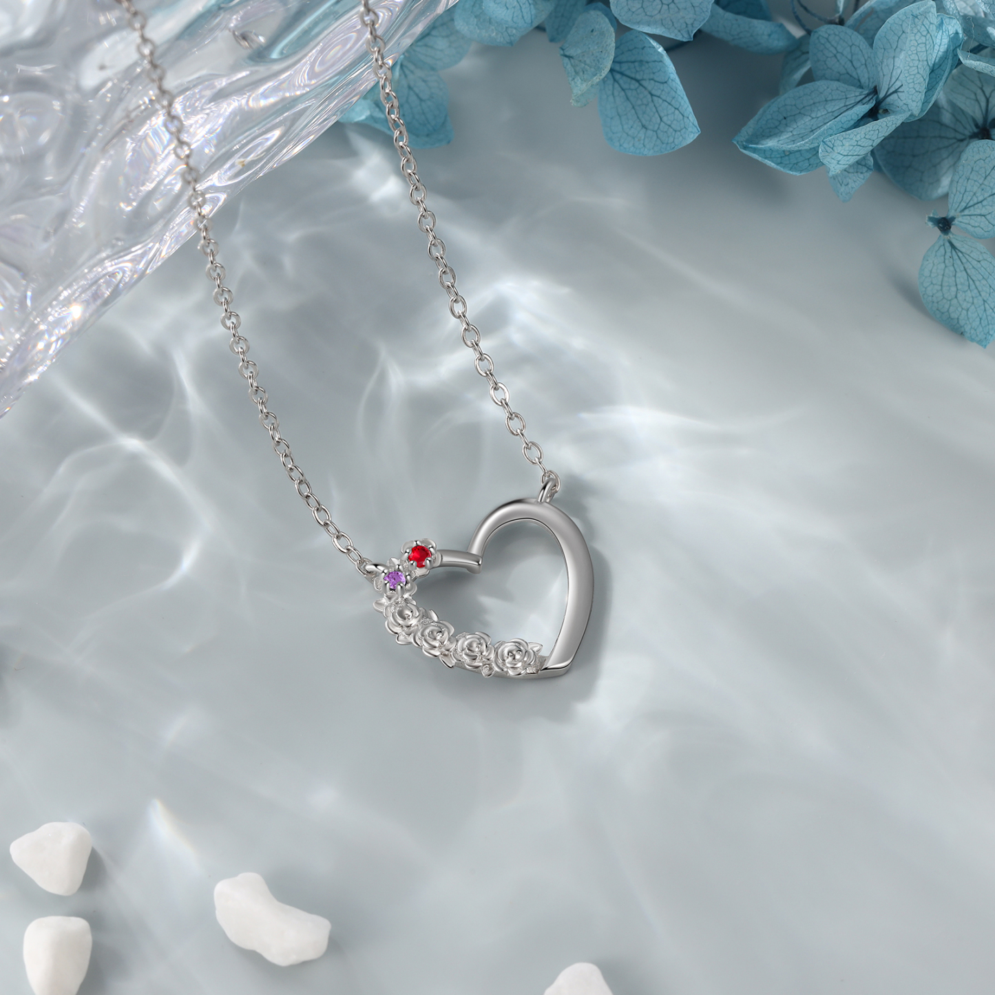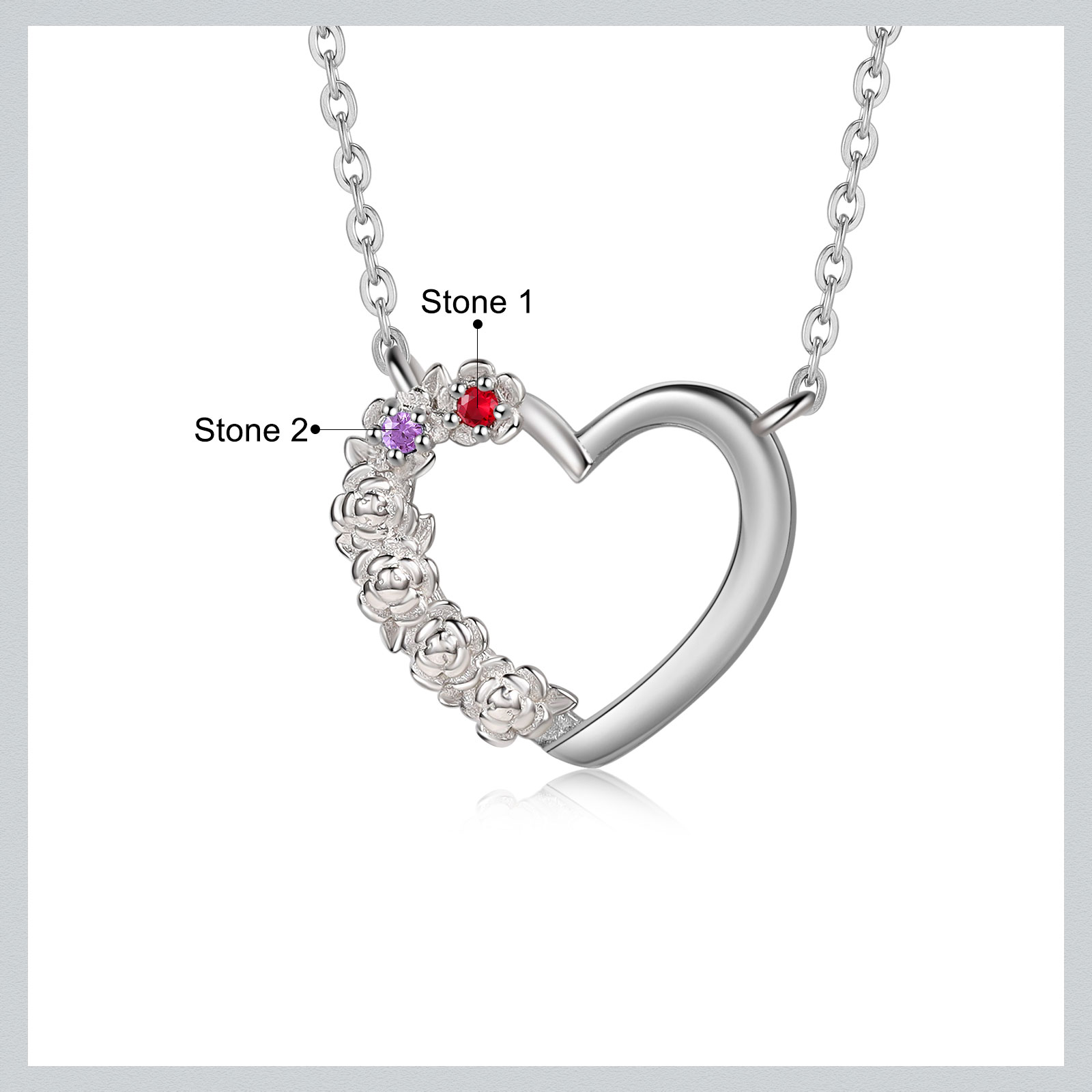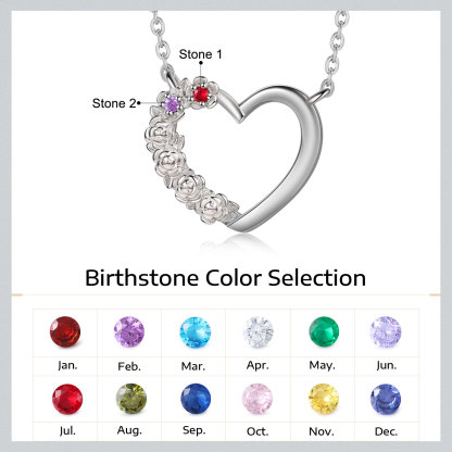 Personalisierte 2 Geburtssteine Herz Rose Halskette für Großmutter