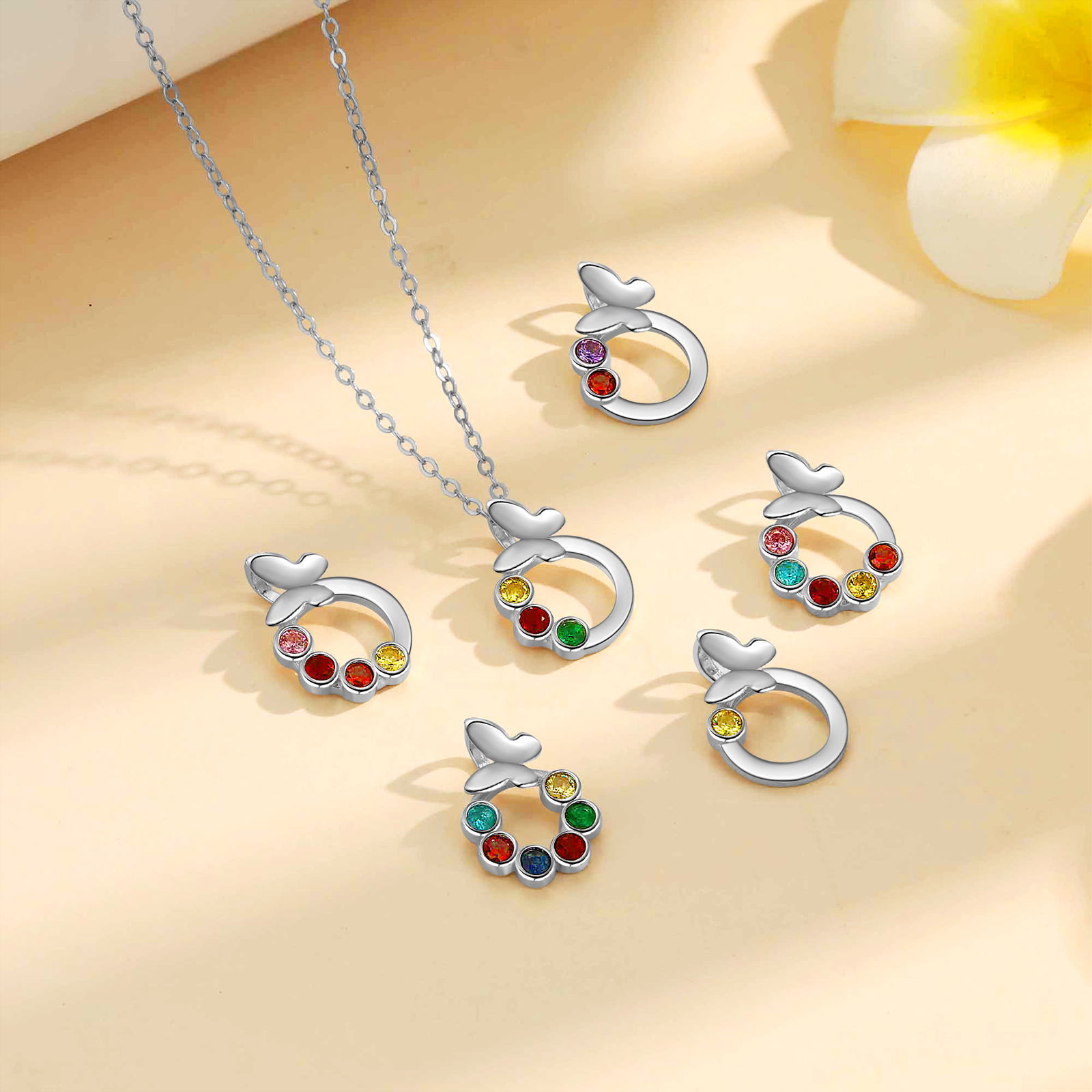 Personalisierte 2 Geburtssteine Schmetterling Kreis Halskette