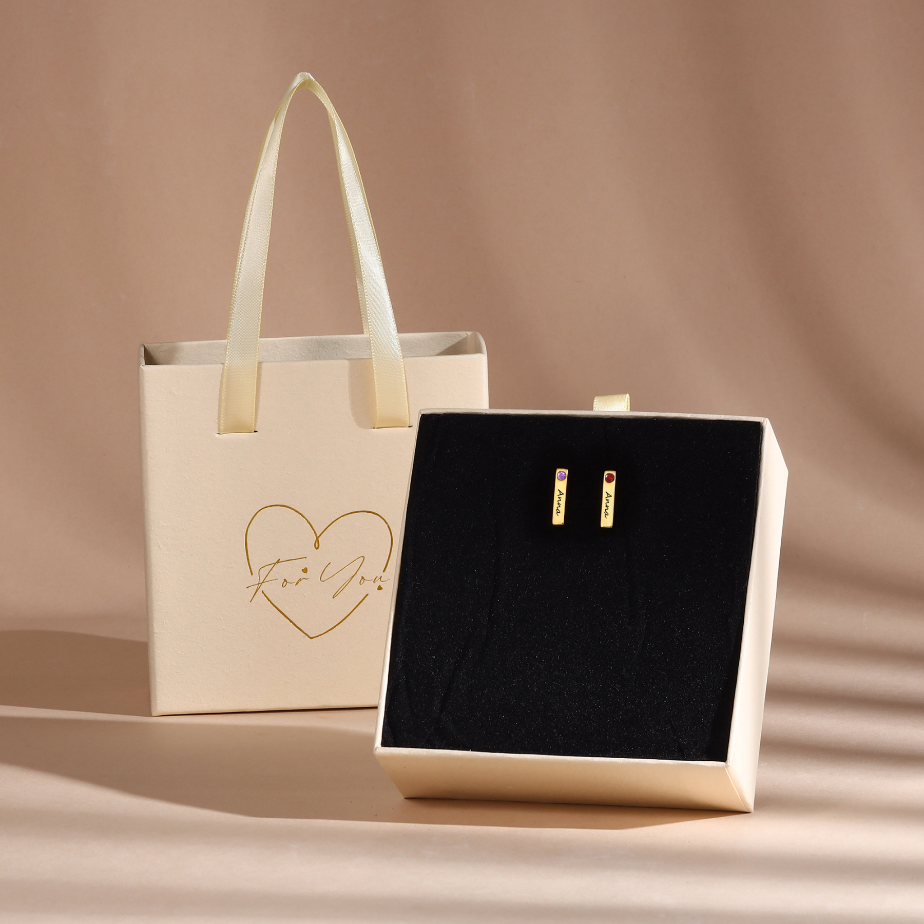 Personalisierte 2 Geburtssteine & Text Bar Ohrstecker Ohrringe