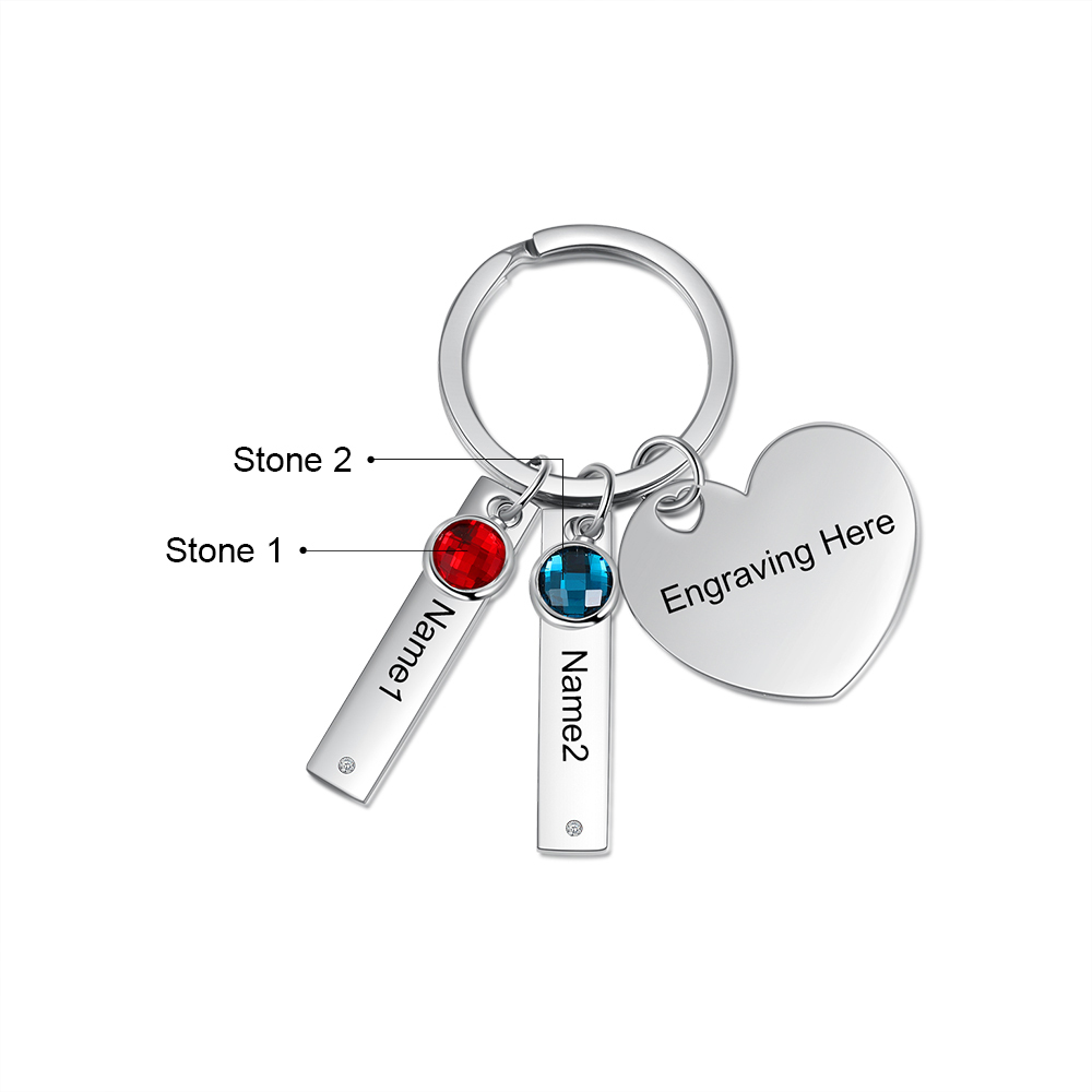 Personalisierte 2 Geburtssteine und 2 Namen Schlüsselbund