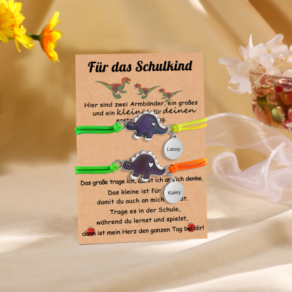 Personalisierte 2 Name Dino Armbänder Set mit 2 Ketten Gummiband - Für das Schulkind - Schulanfang Geschenk
