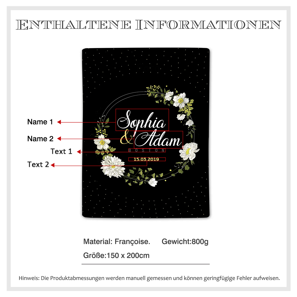 Personalisierte 2 Namen & 2 Texte Decke Für Paare