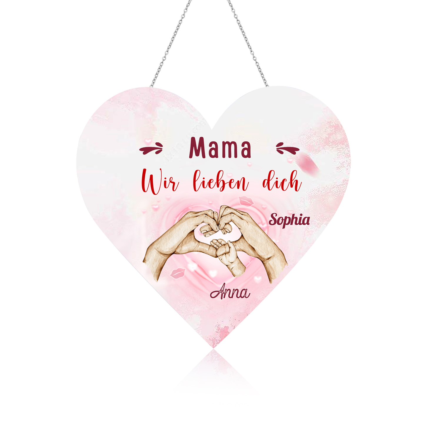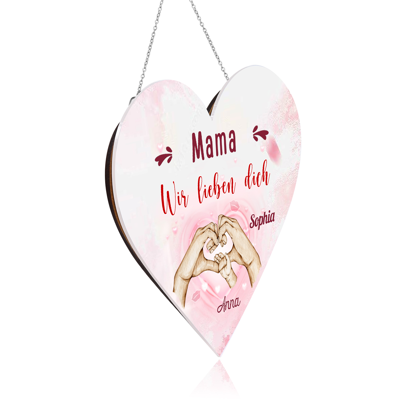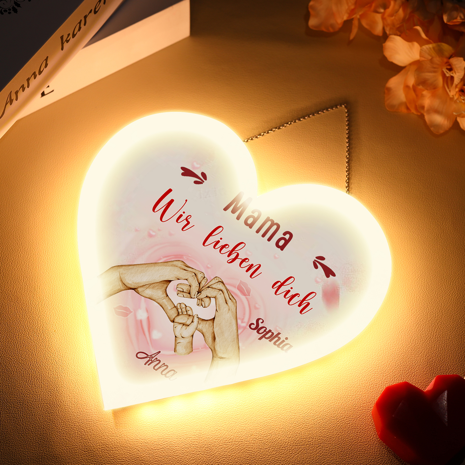 Personalisierte 2 Namen & 2 Texte Familie Hand in Hand Herz Ornament Licht Acryl Hängender Wandlampe Geschenk für Mutter