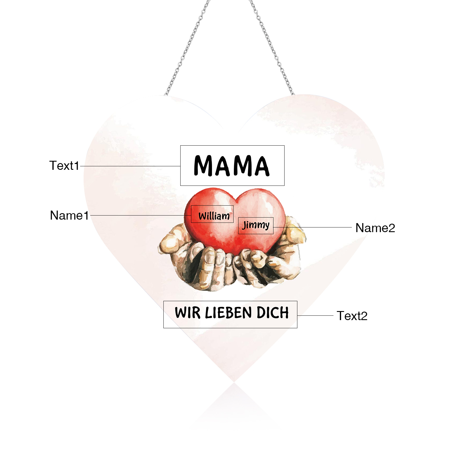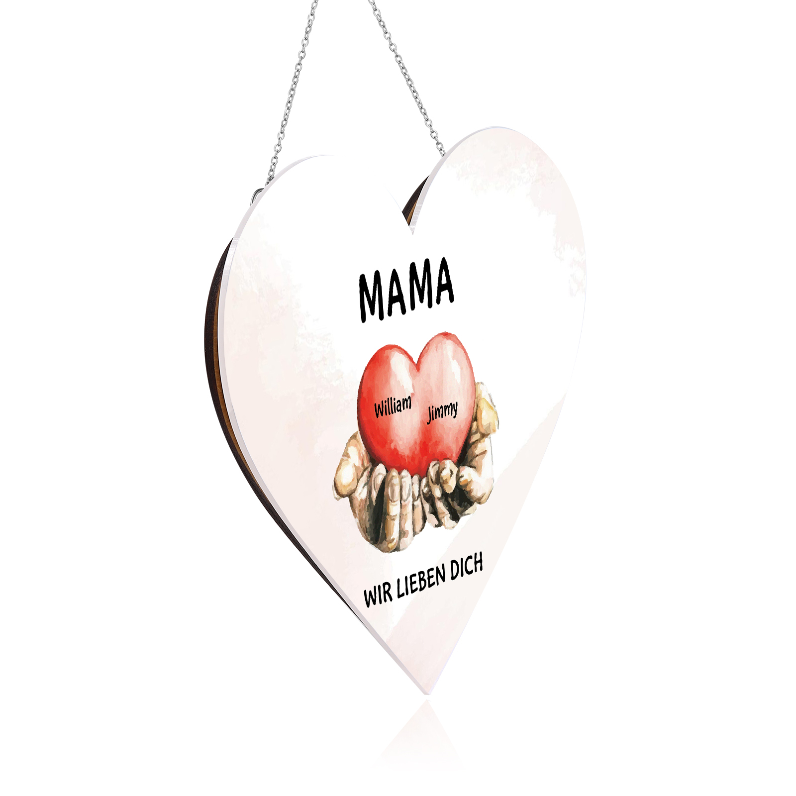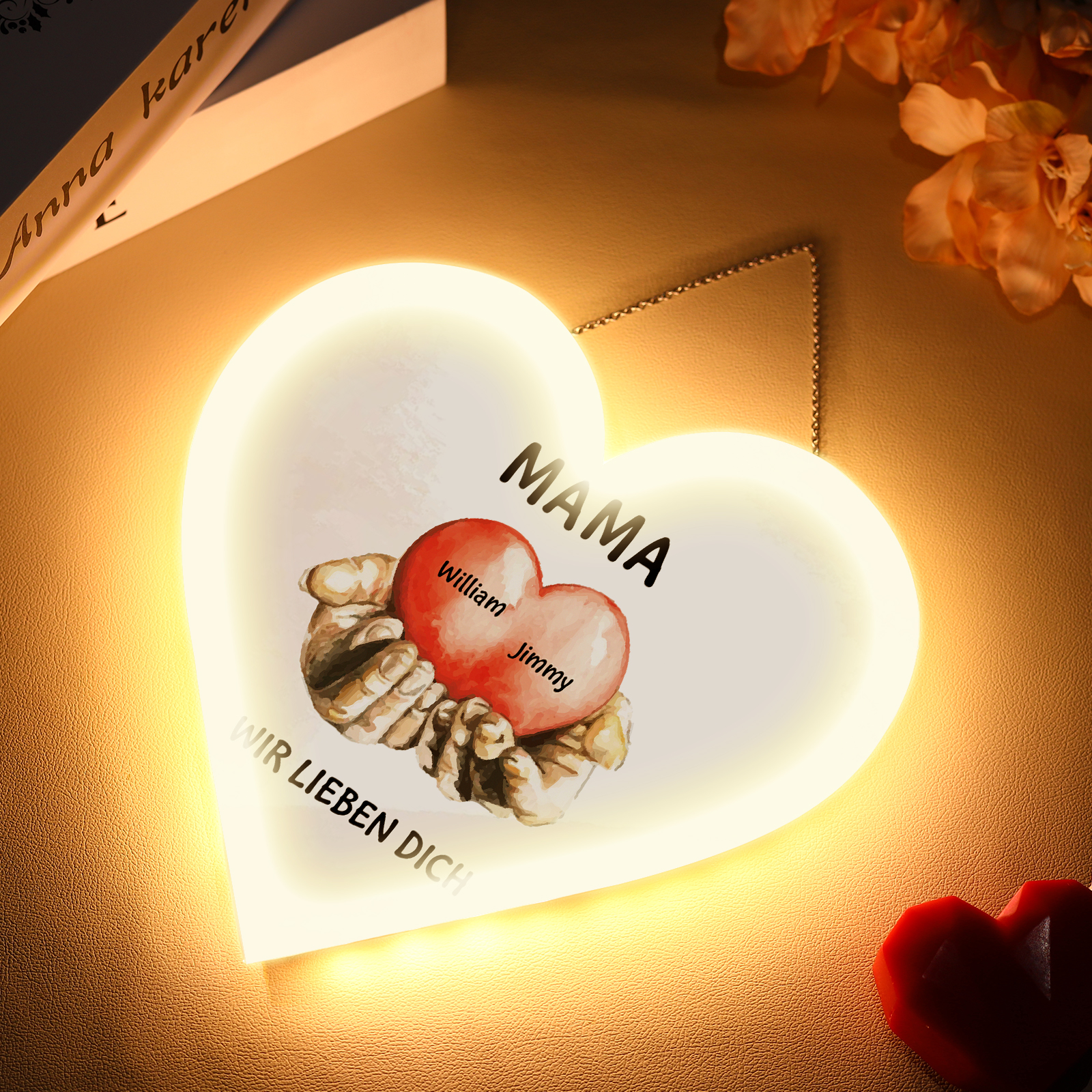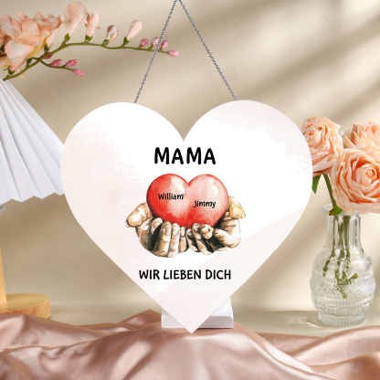 Personalisierte 2 Namen & 2 Texte Herz auf der Hand Herz Ornament Licht Acryl Hängender Wandlampe Geschenk für Mutter