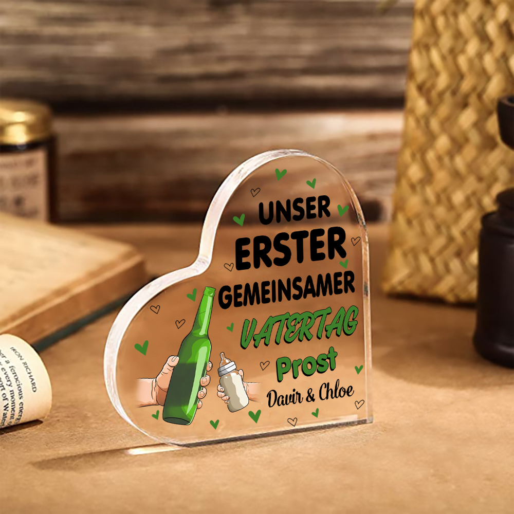 Personalisierte 2 Namen Acryl-Deko-Unser erster gemeinsamer Vatertag Prost-Schreibtischdekoration für Vater