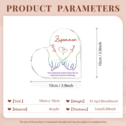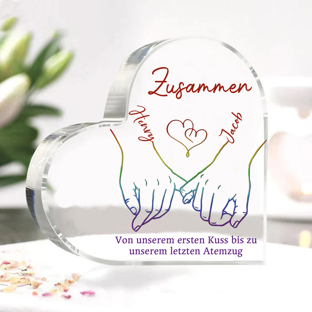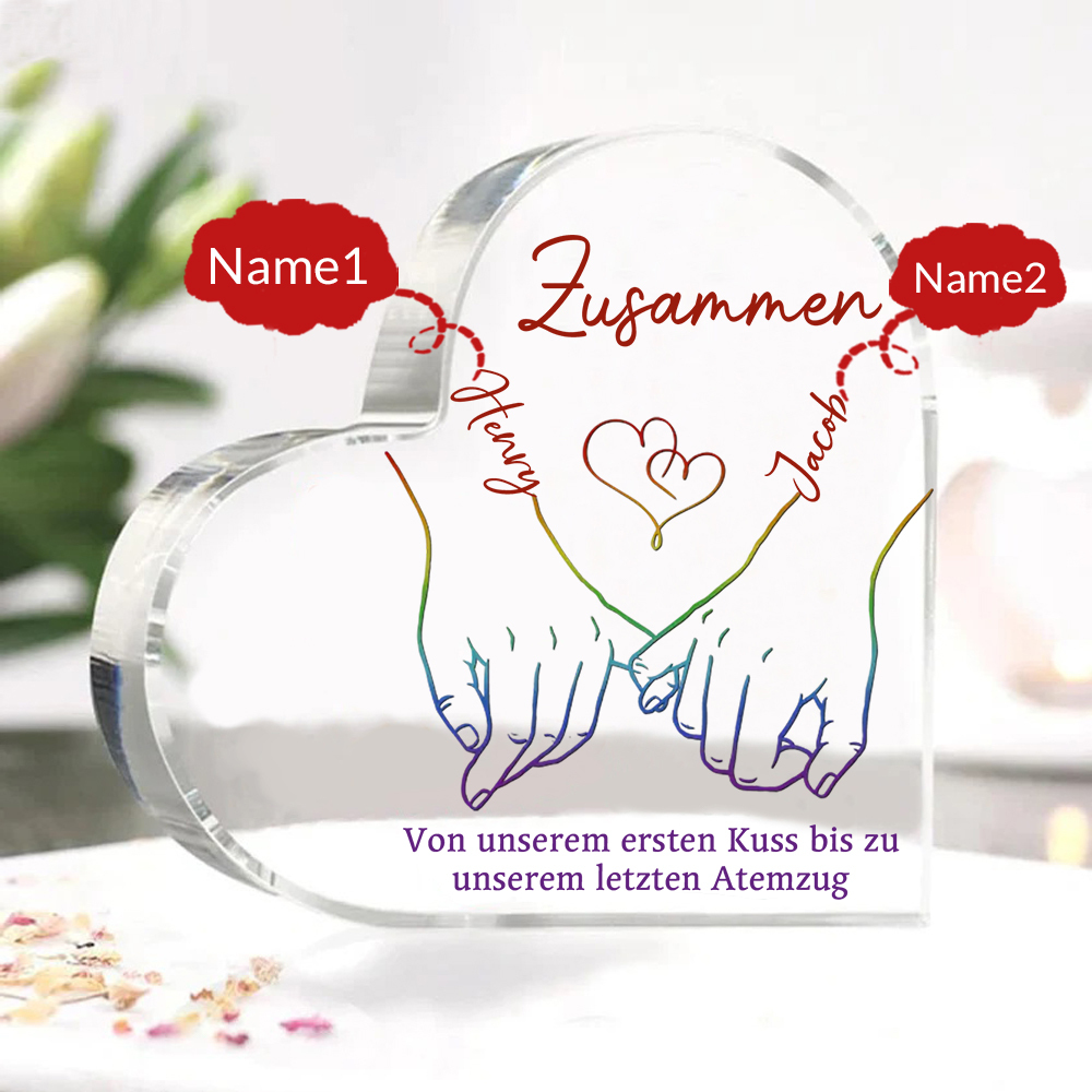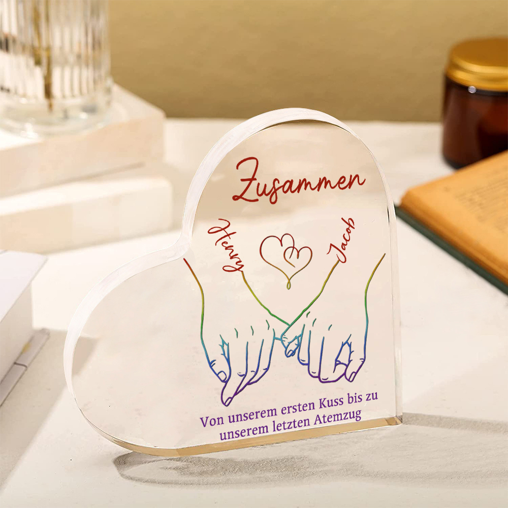 Personalisierte 2 Namen Acryl-Deko-Zusammen von unserem ersten Kuss bis zu unserem letzten Atemzug-Schreibtischdekoration für LGBT Paar