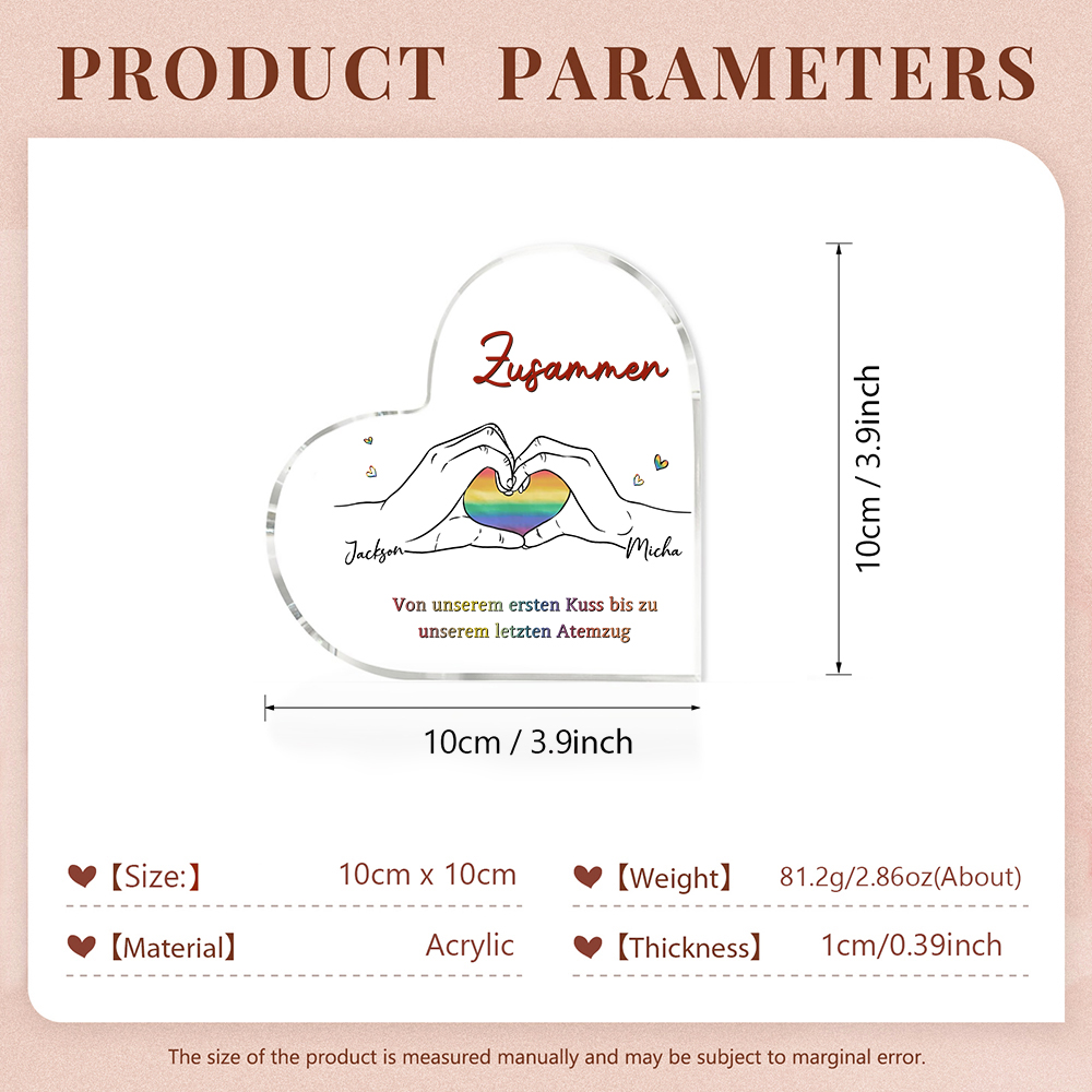 Dies ist eine Acryl-Schreibtischdekoration, die als Geschenk für Paar gedacht ist. Es gibt viele Möglichkeiten, Ihre besonderen Gefühle für Ihre Freundin/Ihren Freund auszudrücken. Sie können diese Deko anzünden und ihr/ihm sagen, wie besonders sie/er für Sie ist.