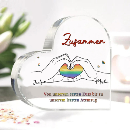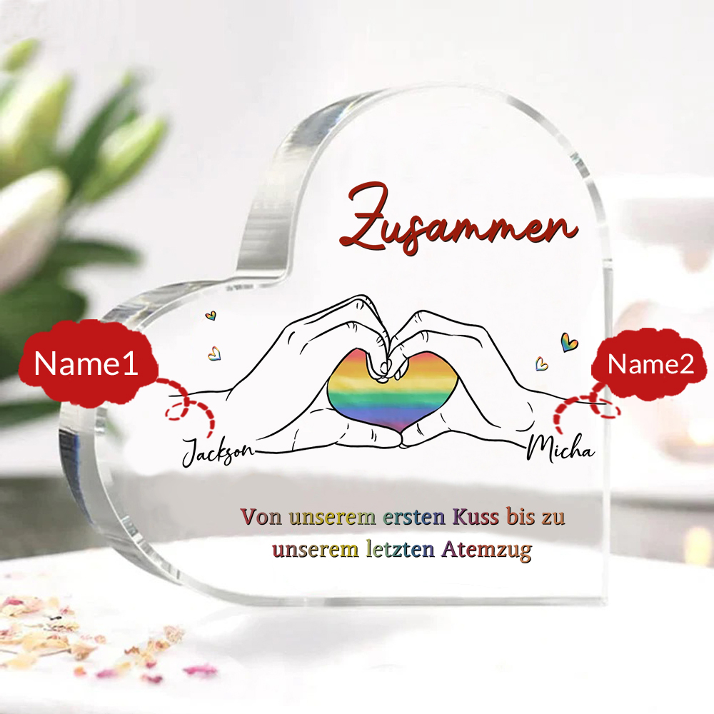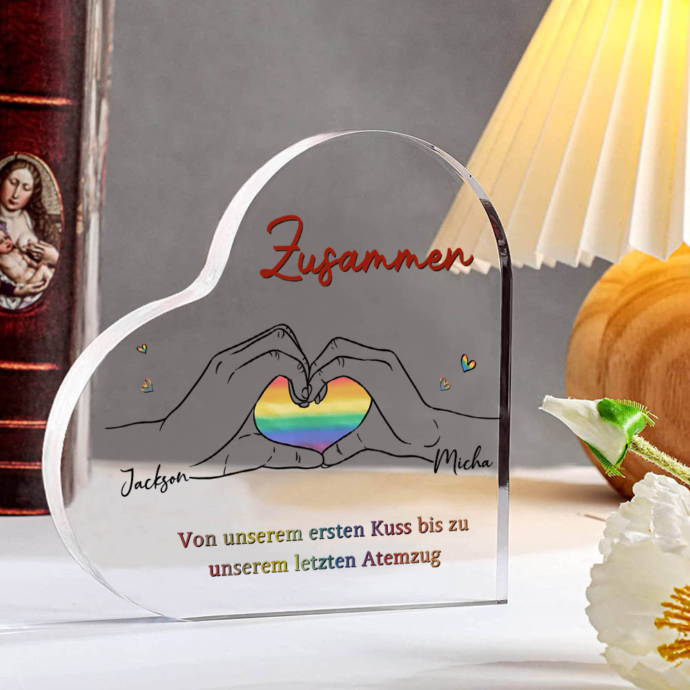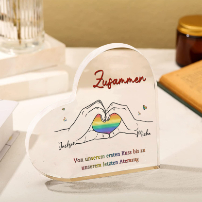 Personalisierte 2 Namen Acryl-Deko-Zusammen von unserem ersten Kuss bis zu unserem letzten Atemzug-Schreibtischdekoration für LGBT Paar