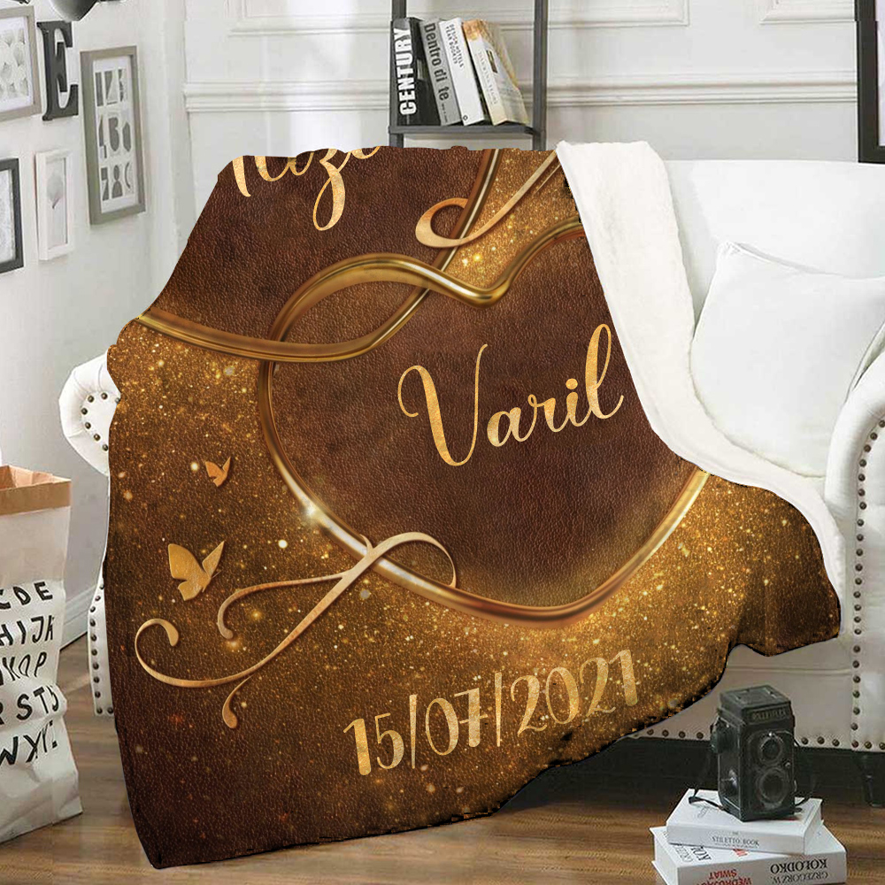 Personalisierte 2 Namen & Datum Herz & Herz Decke-Für Paare
