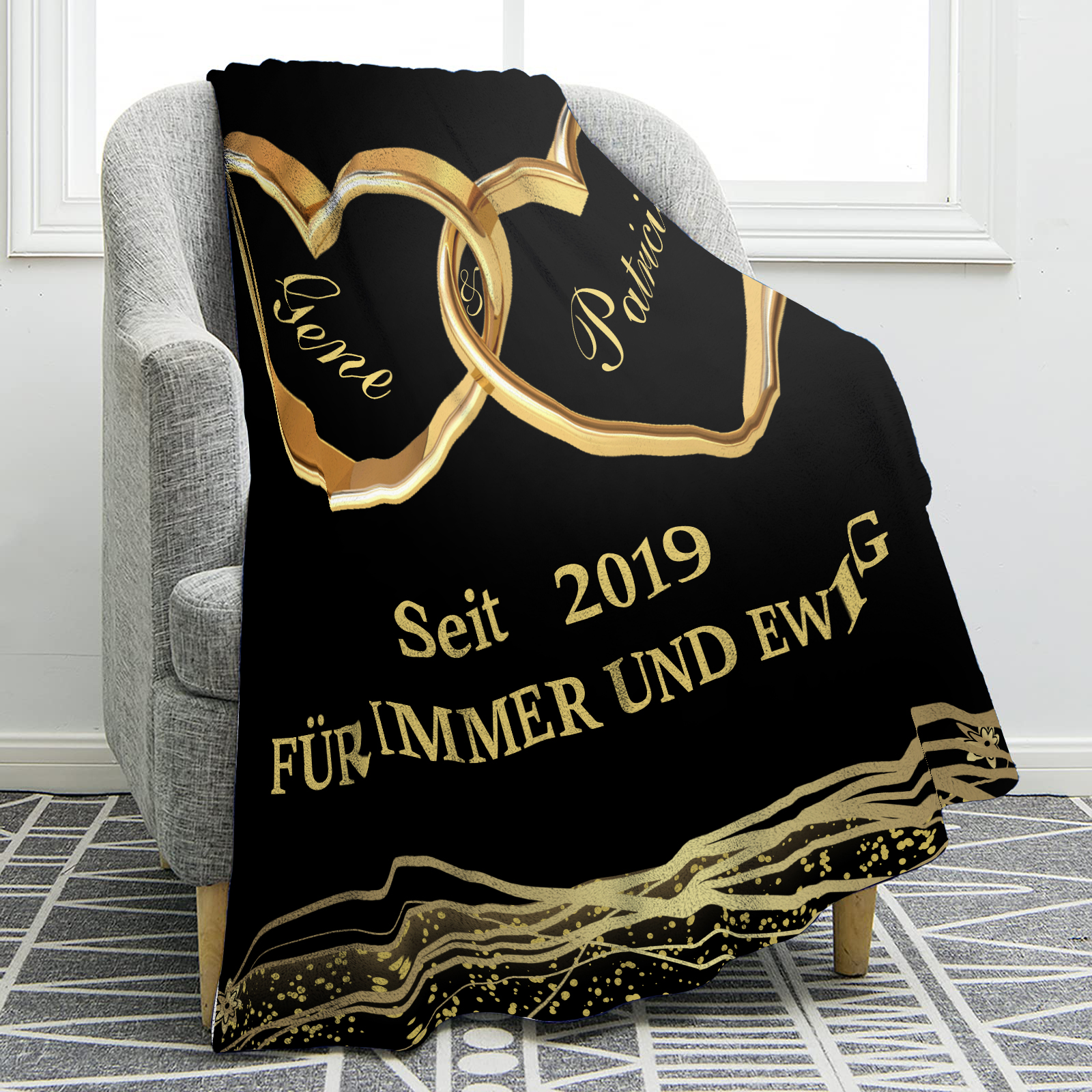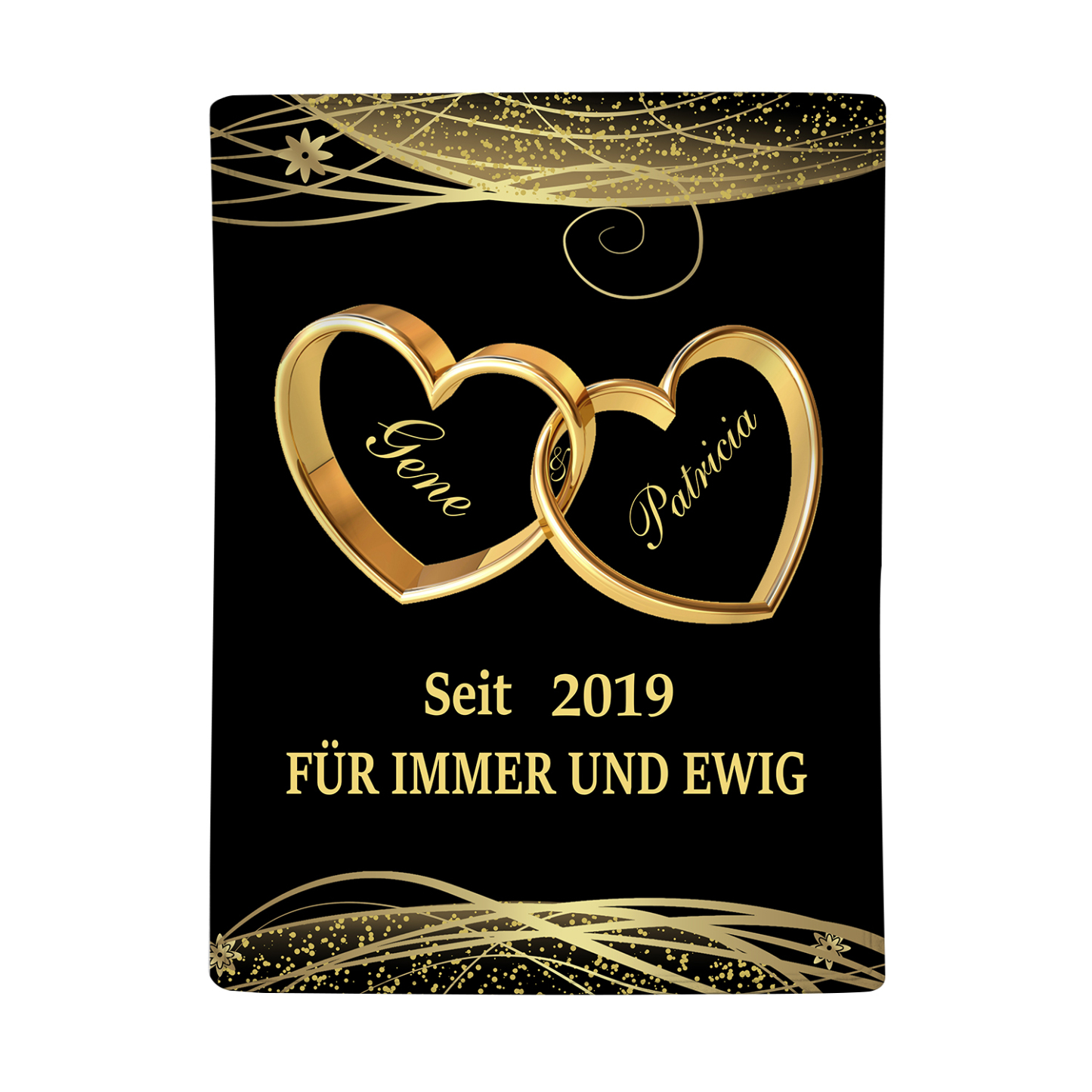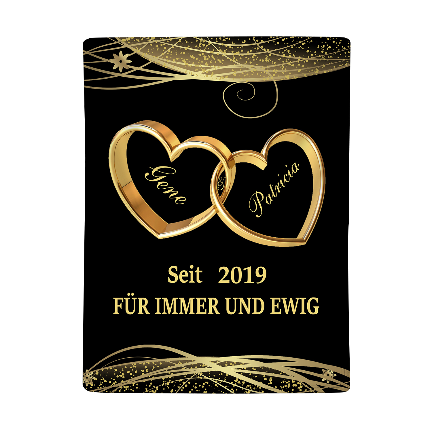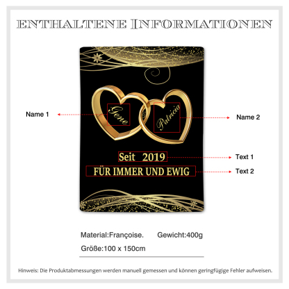 Personalisierte 2 Namen & Texte Paar Herz Ring- Decke Für Paare