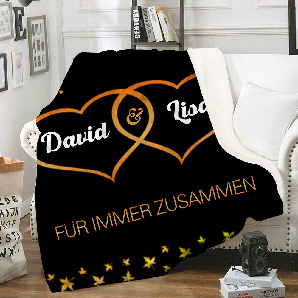 Personalisierte 2 Namen & Text Paar Herz Decke Für Paare